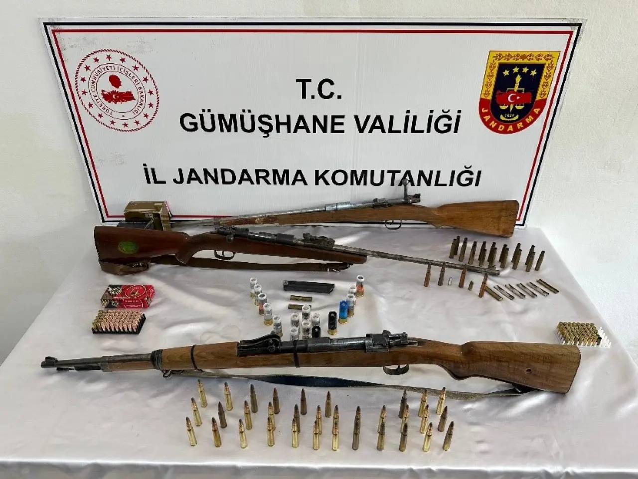 Gümüşhane İl Jandarma Komutanlığı ekipleri Merkez ilçede düzenlenen operasyonda ruhsatsız silah ve mühimmat ele geçirdi. 3 şüpheli hakkında adli tahkikat başlatıldı.