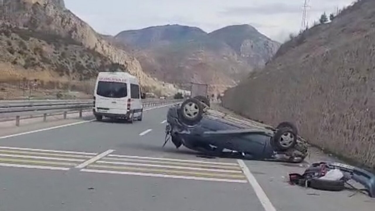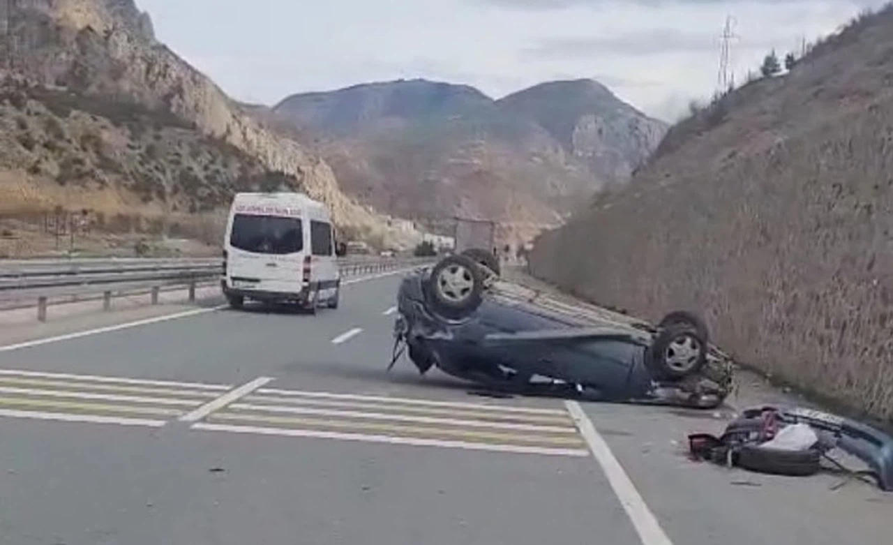 Bariyerlere çarpan otomobil ters döndü. İhbar üzerine olay yerine sağlık ve polis ekipleri sevk edildi.