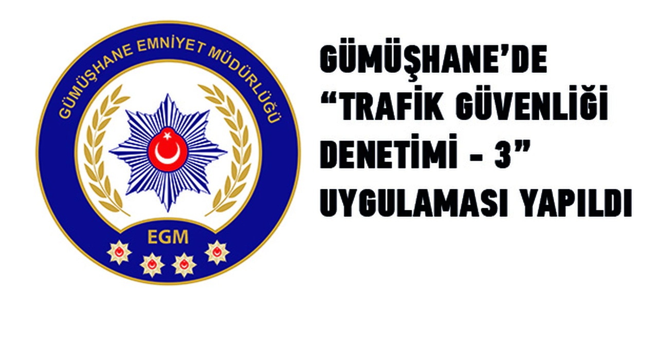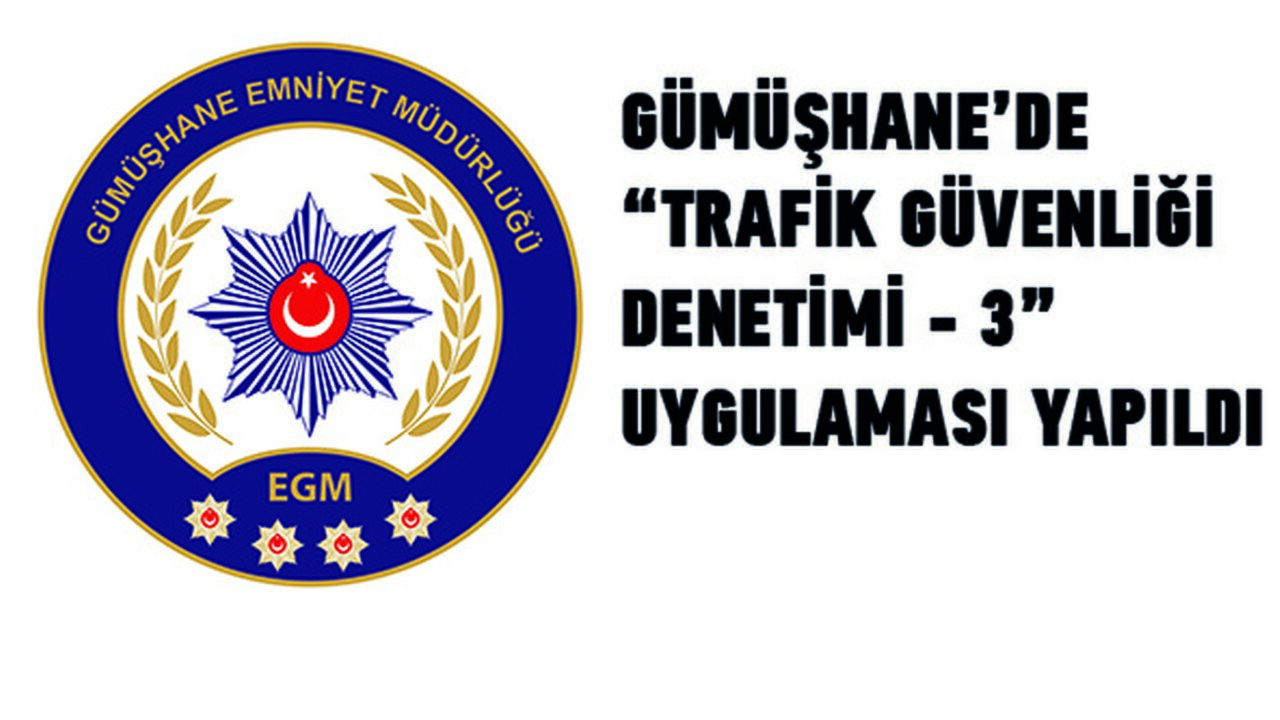 Gümüşhane İl Emniyet Müdürlüğü tarafından 3 periyot halinde yapılan denetimler kapsamında 7 noktada 9 ekip ve 20 personelle emniyet kemeri, hatalı sollama, kırmızı ışık ihlali ve alkol denetimi ağırlıklı olmak üzere uygulama yapıldı.