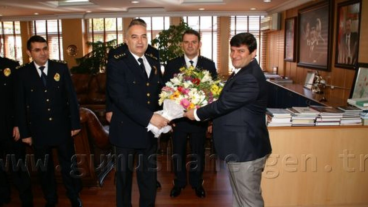 Kutlamalar çerçevesinde İl Emniyet Müdürü Hüseyin Ümit Yüksel, beraberindeki emniyet personeli ile Gümüşhane Valisi Dr. Yusuf Mayda’yı makamında ziyaret ederek çiçek ve üzerinde Gümüşhane resimlerinin bulunduğu plaketi takdim etti.