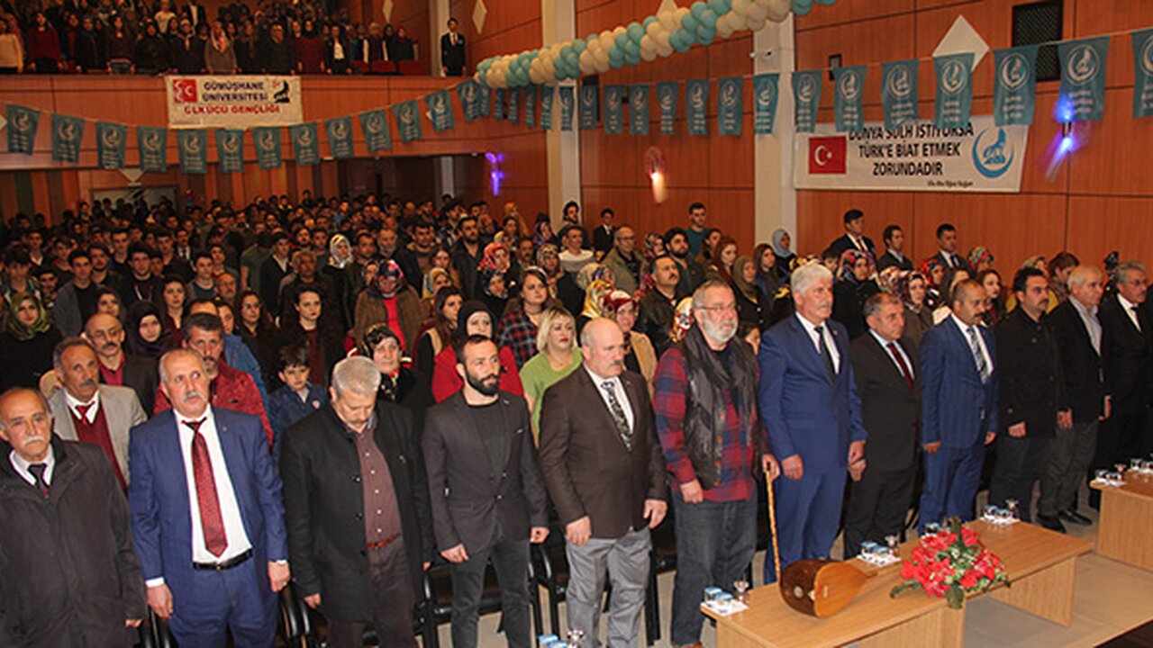 Programda konuşan Ülkü Ocakları İl Başkanı Salih Taşcı, “Tarih bana İngiliz ipiyle kuyuya inmemeyi, Rus ayısı ile aynı ini paylaşmamayı, Çin’in yumuşak ipeği ve tatlı yüzüne kanmamayı, Arap’a sırtımı dönmemeyi öğretti. ABD’yi ve AB’yi, Yunan’ı Ermeni’yi, Sırp’ı ve dahi İran’ı da öğretti. Sözün özü tarih bana sadece kendime güvenmem gerektiğini öğretti. Lakin bir de şart koştu bir olursan diri olursun. Gün birlik ve başarabilirsek onunla birlikte dirlik olma günüdür” dedi.