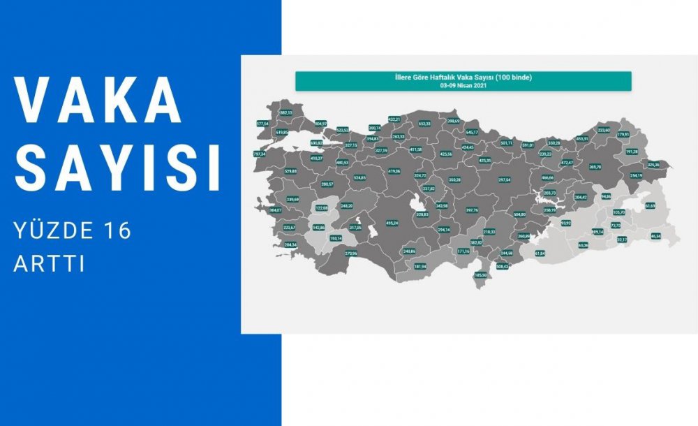 İşte İllere Göre Haftalık Vaka Sayısı (100 binde) (3-9 Nisan 2021) en çoktan aza doğru sıralaması: