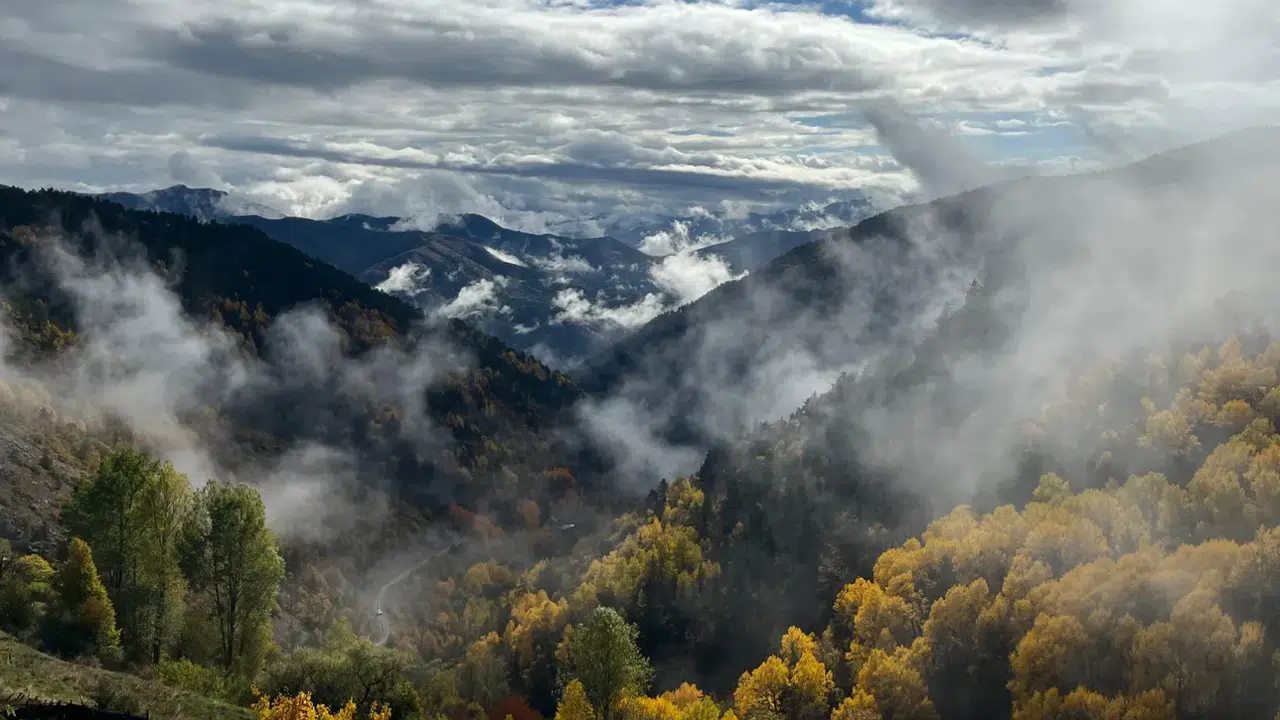 Bugün öğle saatlerinde etkili olan yağışın dinmesinin hemen ardından, vadilerde yoğun bir sis tabakası oluşmaya başladı. Dağların zirveleri bulutlarla birleşirken, ağaçların sararmış yaprakları, sisin beyazlığıyla muhteşem bir kontrast oluşturdu.