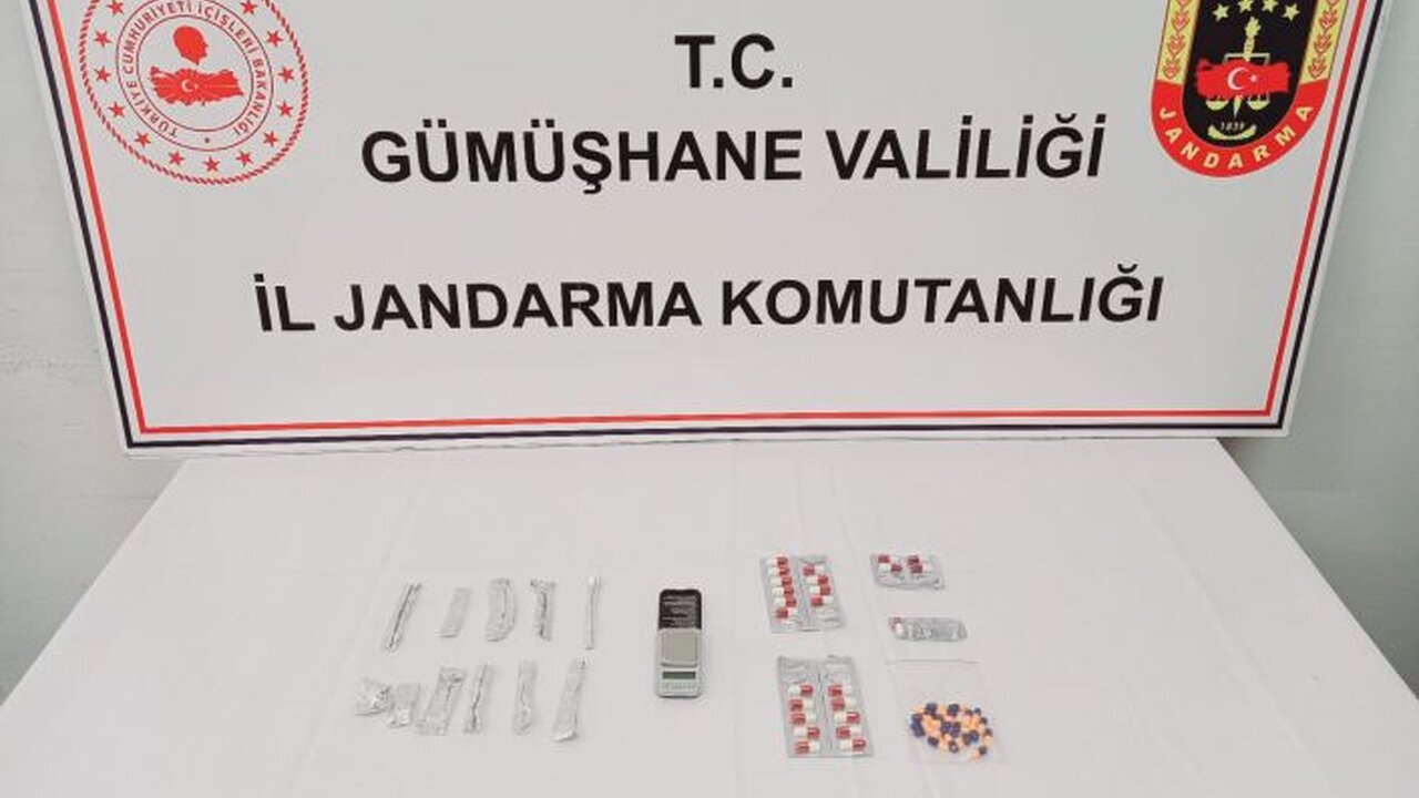 Yapılan kontrol sırasında uyuşturucu arama köpeği Altın’ın tepki vermesi üzerine Gümüşhane Cumhuriyet Başsavcılığından alınan arama kararı doğrultusunda arama yapan Jandarma ekipleri E.Ö. isimli şahsın üzerinde 3x6 santimetre ebatlarında hassas tartı, 10 gram sinir sistemindeki hücreleri uyararak etki gösteren bağımlılık yapıcı maddelerden birisi olan "Metamfetamin" ile 1 gram toz esrar olduğu değerlendirilen madde ve malzemeye el konuldu.