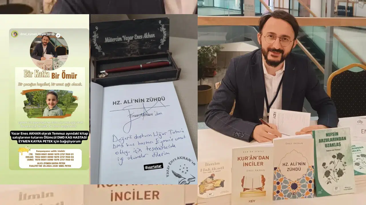Gümüşhaneli yazar ve mütercim Enes Akhan, temmuz ayındaki kitap gelirlerini DMD hastası Eymen Kayra Petek için bağışladığını açıkladı.