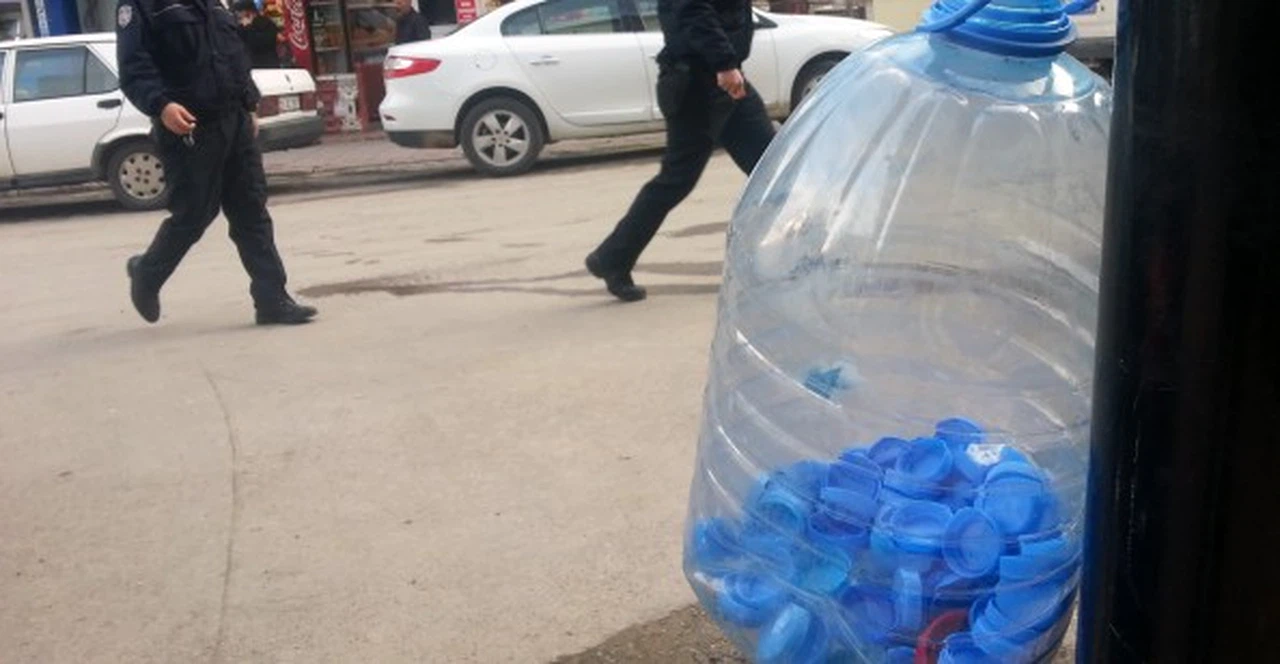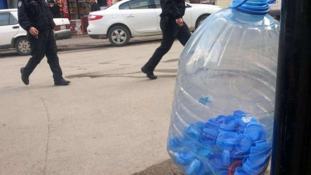 Şehrin en işlek caddeleri olan Atatürk ve Cumhuriyet Caddesinde bulunan çok sayıda işletmenin önündeki bidonlara vatandaşlar su içtikleri plastik şişelerin kapaklarını atıyor.