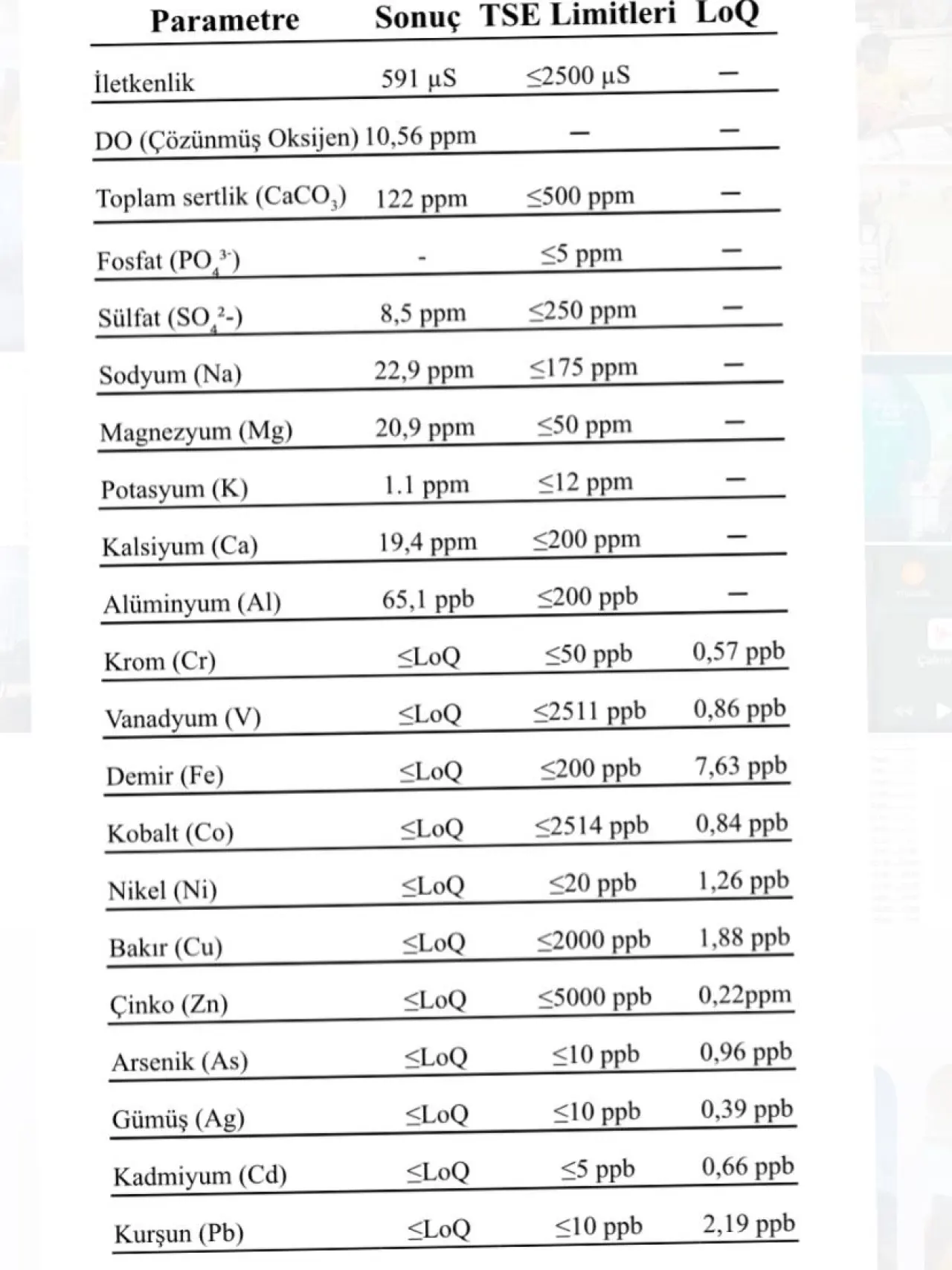Özellikle Çözünmüş Oksijen (DO) oranının 10,56 ppm olması, suyun canlılığını ve tazeliğini ispatlıyor. En kritik veri ise ağır metaller kısmında geldi; suyun içinde Arsenik, Kurşun, Kadmiyum ve Nikel gibi sağlığa zararlı elementler tespit edilemedi.