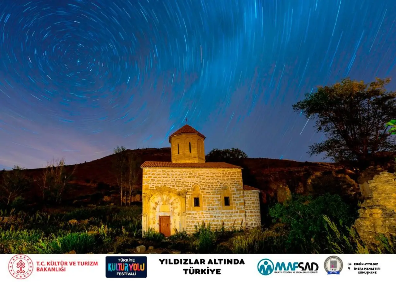 Ülke genelinde 18 fotoğraf sanatçısının 30 eserinden oluşan sergide yer alan Engin Ayyıldız imzalı iki fotoğraf Gümüşhane’nin köklü tarihini ve mimari ihtişamını gözler önüne seriyor. Bu karelerden ilki, merkeze bağlı Olucak köyünde bulunan tarihi İmera Manastırı'nın mistik siluetini yıldızlarla birleştiriyor.