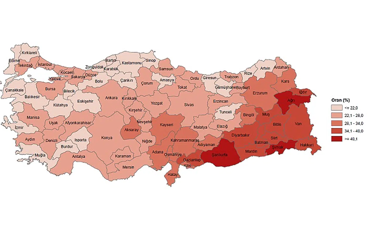 Türkiye nüfusunun yüzde 26,9'unu çocuk nüfus oluştururken Gümüşhane'de çocuk nüfusun toplam nüfus içindeki oranı yüzde 21,2 olarak Türkiye ortalamasının altında çıktı.