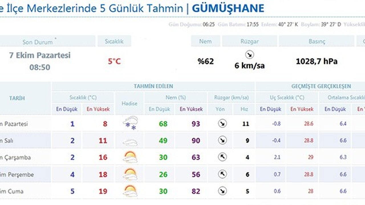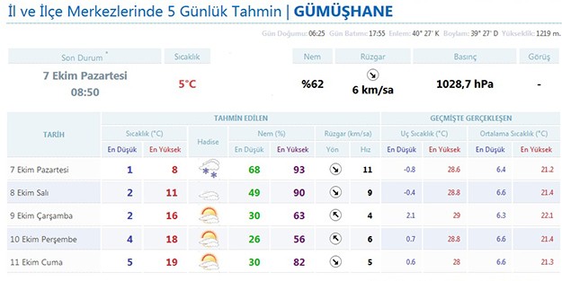 Meteoroloji'nin son tahminlerine göre Gümüşhane'de hava yarından itibaren açacak. Bugün için yağış ve yükseklerde kar tahmini yapan meteoroloji, yarından itibaren havanın açacağını, sıcaklığın da 3 ila 9 derece arasında artmasını bekliyor.