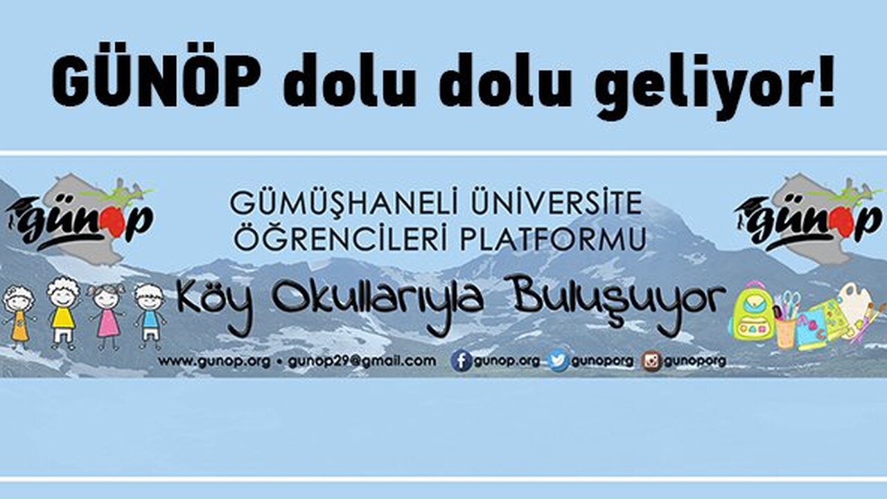 Gümüşhane’de 3 köy okuluna kitap, çanta, kırtasiye malzemesi, bot ve mont yardımı yapmak için başlattıkları ‘’GÜNÖP Köy Okullarıyla Buluşuyor’’ projesi kapsamında Gümüşhane’de bir dizi etkinlik gerçekleştireceklerini ifade eden platform başkanı Enes Kaya, “İlk olarak sadece kitap yardımı amaçlayarak başlattığımız ve bu yıl 2.sini gerçekleştireceğimiz bu projenin bu kadar geniş bir içeriğe ulaşmasının sebebi Gümüşhaneli hemşerilerimizin yardımlaşma ve dayanışmaya verdiği önemdir” dedi.