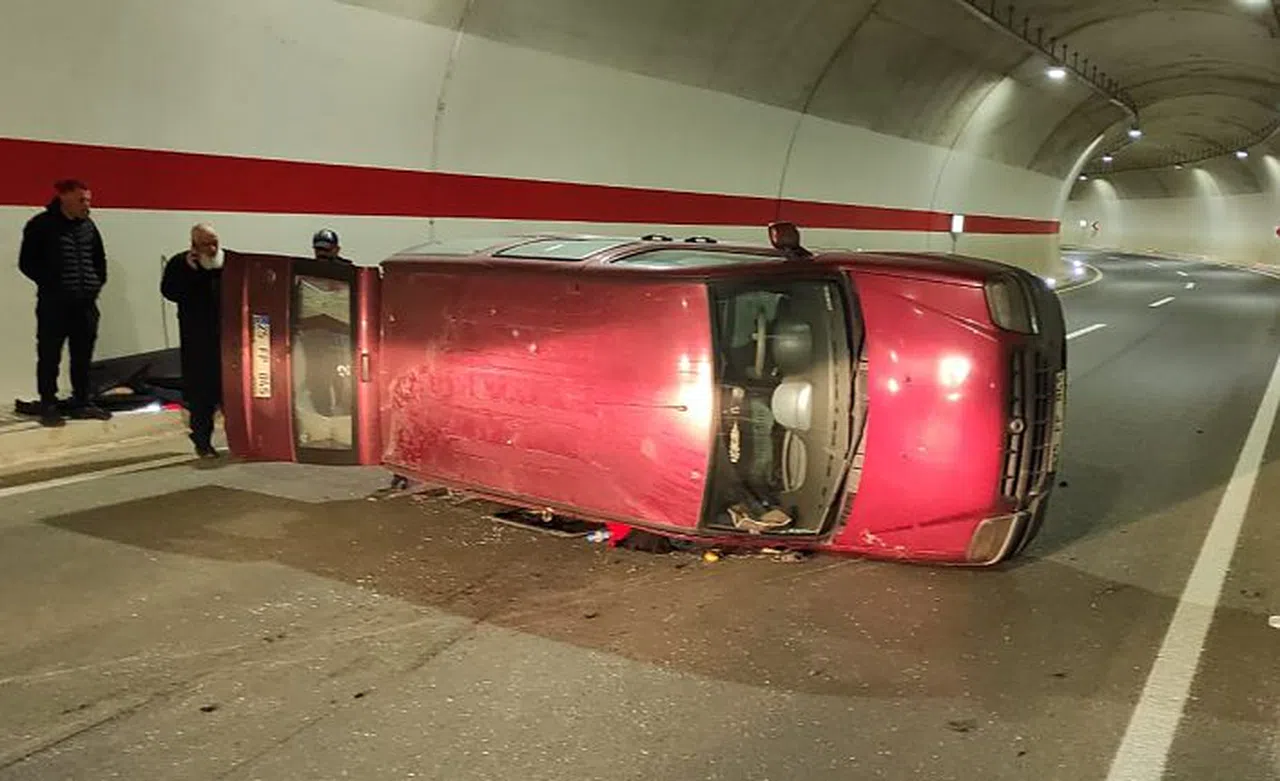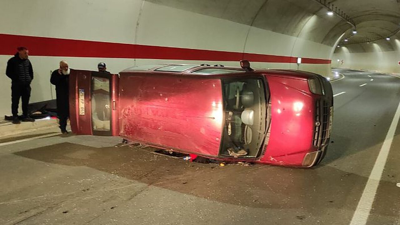 Hafif ticari araç tünel içinde yan yattı: 2 yaralı