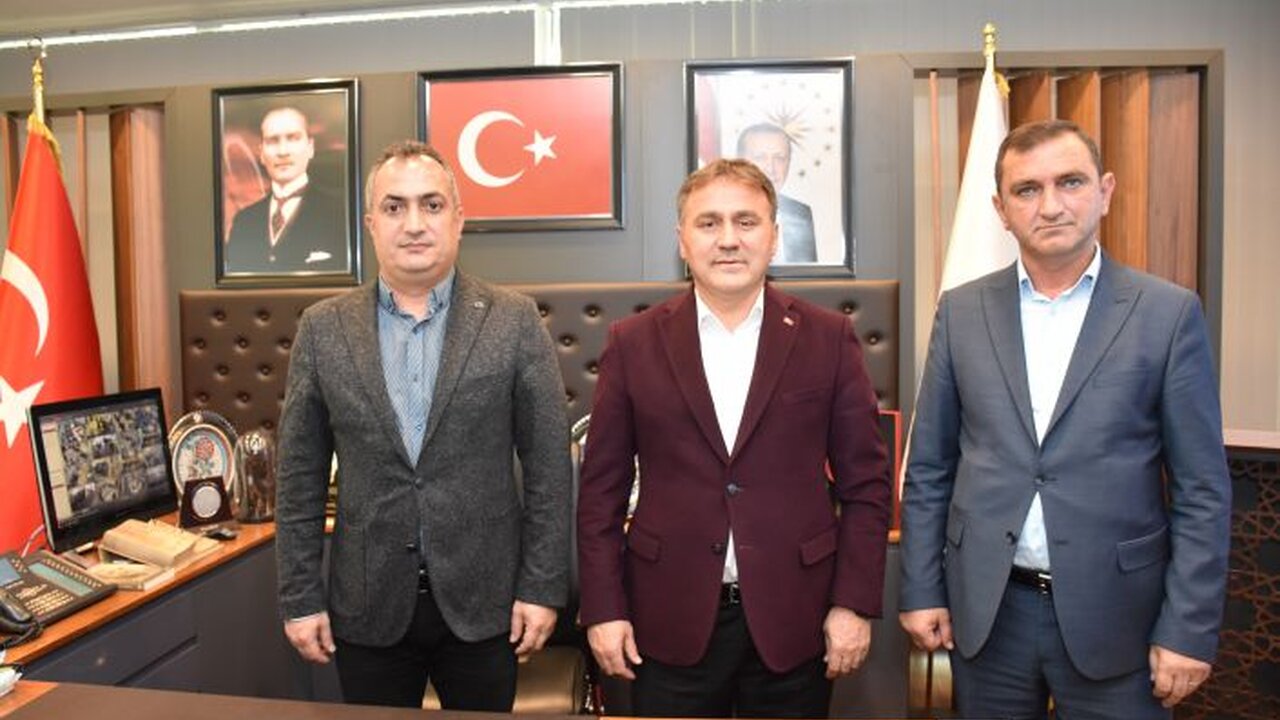 Belediye Başkanı Ercan Çimen, DSİ Gümüşhane Şube Müdürü Ümit Yayla ve yüklenici firma olan MİTAŞ Proje ve İnşaat A.Ş. temsilcisi Ünalan Yücesoy’u makamında kabul etti.