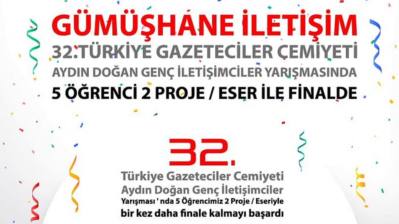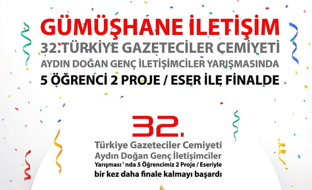 İletişimin Oscarları olarak anılan ve alanın önemli yarışmalarından birisi olan 32. Türkiye Gazeteciler Cemiyeti Aydın Doğan Genç İletişimciler Yarışması’nda Gümüşhane Üniversitesi İletişim Fakültesi geleneği bozmayarak 5 öğrencisi ve 2 proje/eseriyle her yıl olduğu gibi bu yıl da finale kalma başarısı gösterdi ve ödül almaya hak kazandı.