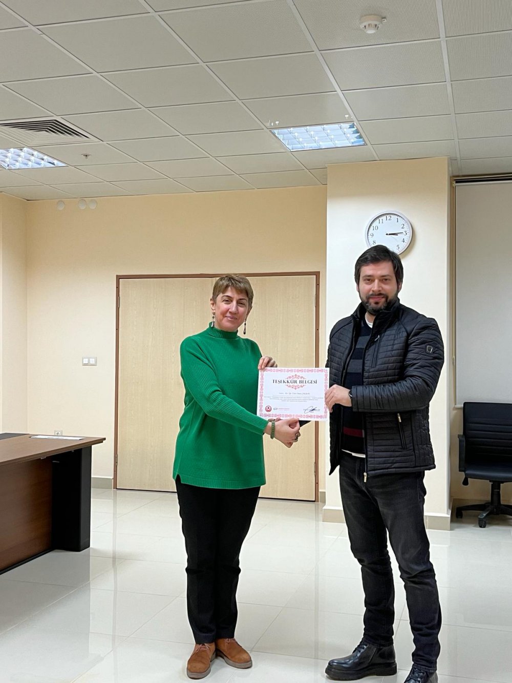 Törende Dr. Öğr. Üyesi Kaan Gez, Öğr. Gör. Fatma Dilek Diker, Doç. Dr. Ersin Diker, Dr. Öğr. Üyesi Fatih Aksoy, Dr. Öğr. Üyesi Sinan Çakmak, Dr. Öğt.Üyesi Gülen Sönmez, Dr. Öğr. Üyesi Şadiye Kotanlı Kızıloğlu, Öğr. Gör. Çağatay Demirel, Doç. Dr. Ali Özcan, Dr. Öğr. Üyesi Mustafa Cankut Kurt ve Dr. Öğr. Üyesi Mehmet Akif Günay’a teşekkür belgelerini takdim eden Prof.Dr. Çalışır, “Katkı sunan, emeği geçen herkese çok teşekkür ederim” ifadelerini kullandı.