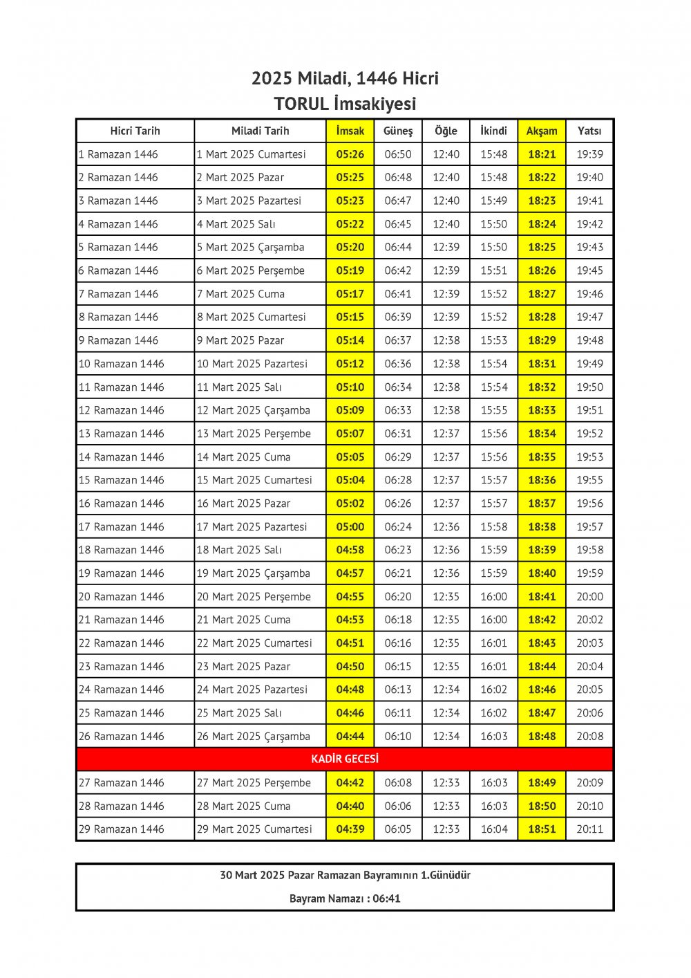 İşte Gümüşhane'nin ilçe ilçe Ramazan imsakiyeleri: