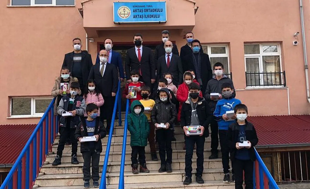 Gümüşhane’nin Torul ilçesine bağlı İnkılap köylüleri köy muhtarı Ahmet Oral’ın girişimiyle aralarında topladıkları paralarla bölgedeki taşıma eğitim merkezi okul olan Aktaş Ortaokulunda okuyan çocuklar için tablet yardımında bulundu.