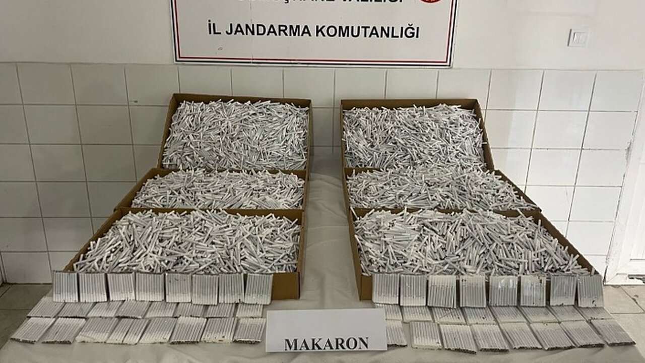 Araçta arama yapan ekipler 16 bin 610 adet içi doldurulmuş makaron ele geçildi.
