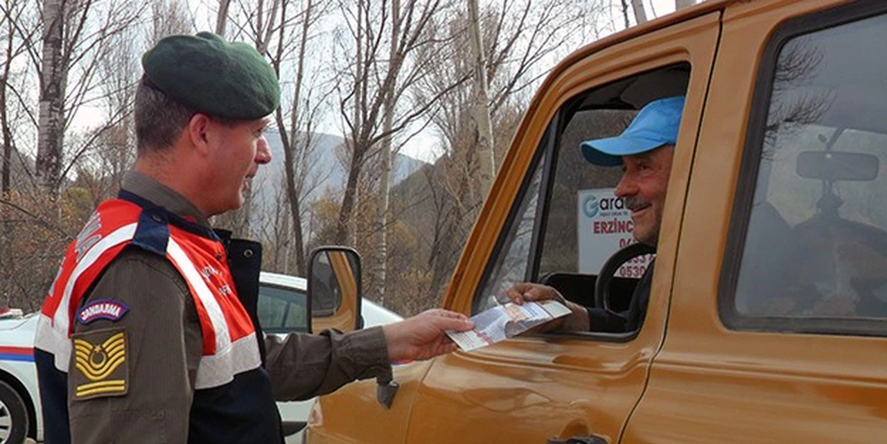 Karayolu Trafik Güvenliği Eylem Planı kapsamında, sürücü ve yolculara emniyet kemeri takma alışkanlığının kazandırılmasına yönelik olarak hazırlanan broşürler Jandarma Trafik sorumluluk bölgesindeki karayollarında yapılan trafik denetim ve kontrolleri esnasında yapılıyor.