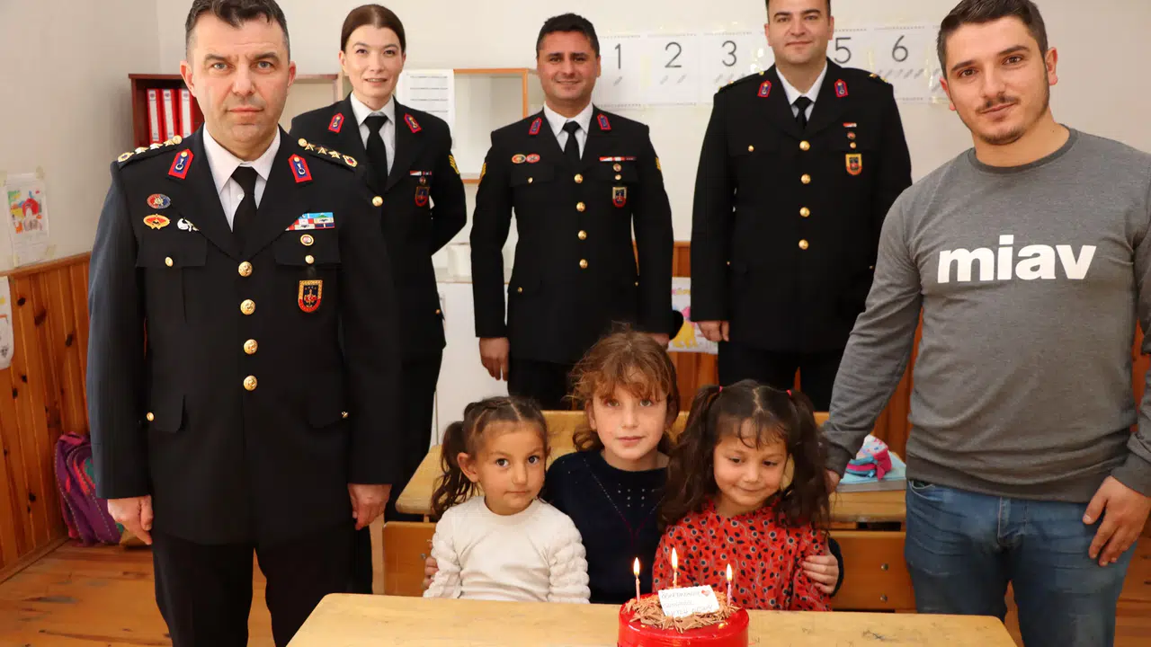 Ziyaret kapsamında Jandarma personeli, beraberlerinde getirdikleri pastayı Öğretmen Metin Taşdemir ve öğrencileriyle birlikte kesti.