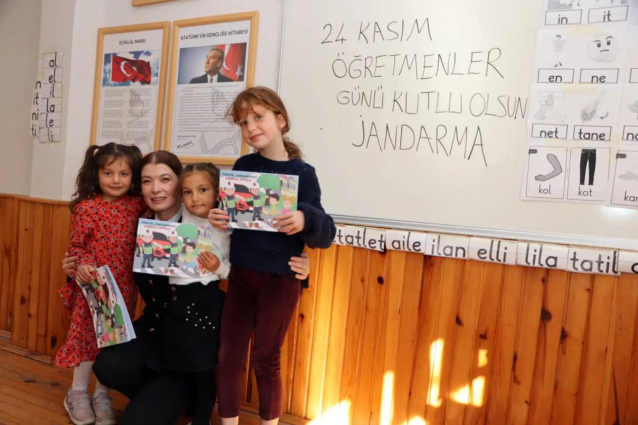 Sınıf içerisindeki samimi atmosfer, öğrencilerin yüzlerine yansıyan gülümsemelerle birleşince ortaya renkli görüntüler çıktı. Jandarma ağabey ve ablalarından hediyeler alan minik öğrencilerin heyecanı ise etkinliğe ayrı bir neşe kattı.