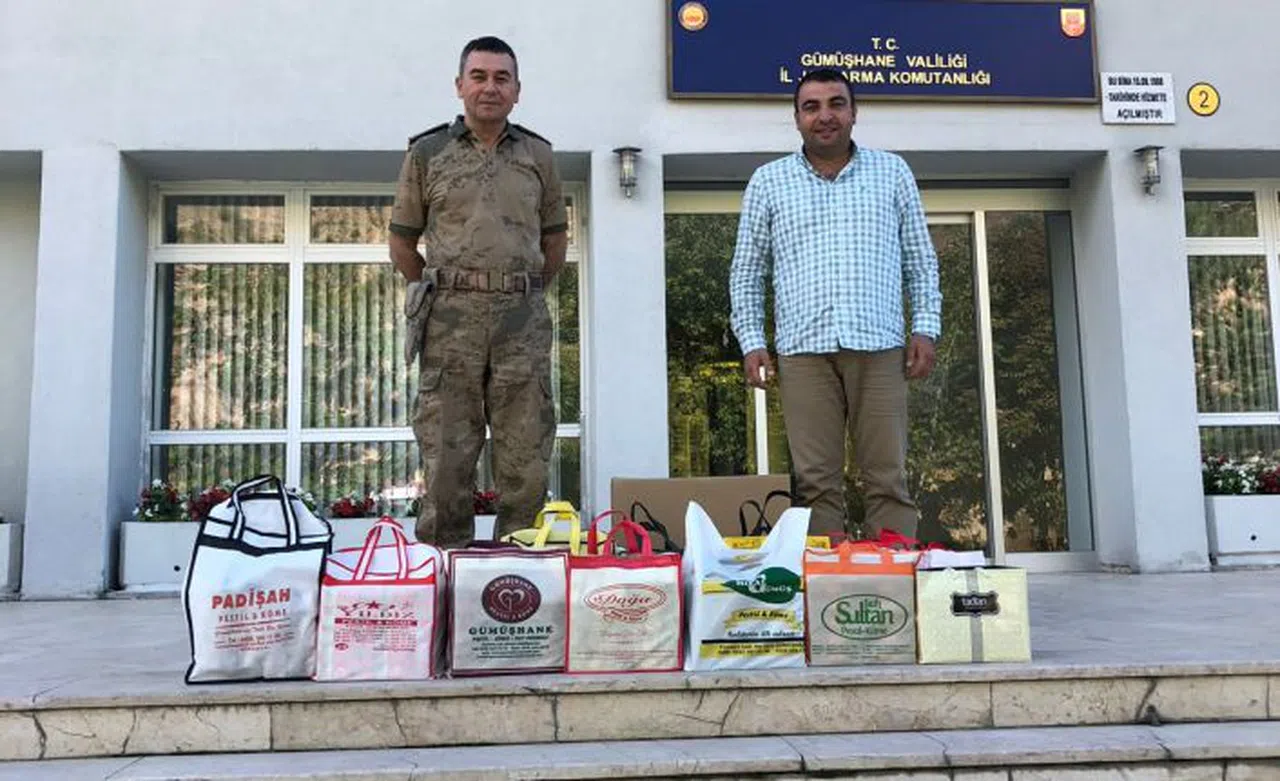 Gümüşhane Pestil ve Köme Üreticileri Birliği Başkanı Baki Kara, son 2 yılda sadece Gümüşhane sınırlarında 2’si kırmızı listede aranan olmak üzere 4 bölücü terör örgütü mensubunu etkisiz hale getiren güvenlik güçlerine moral desteği sağlamak için tüm üreticilerin katkısıyla hazırlanan pestil ve kömeleri Kürtün ilçesinde konuşlanan birliklere teslim edilmek üzere İl Jandarma Komutanı Albay Abdulkadir Seri’ye teslim etti.