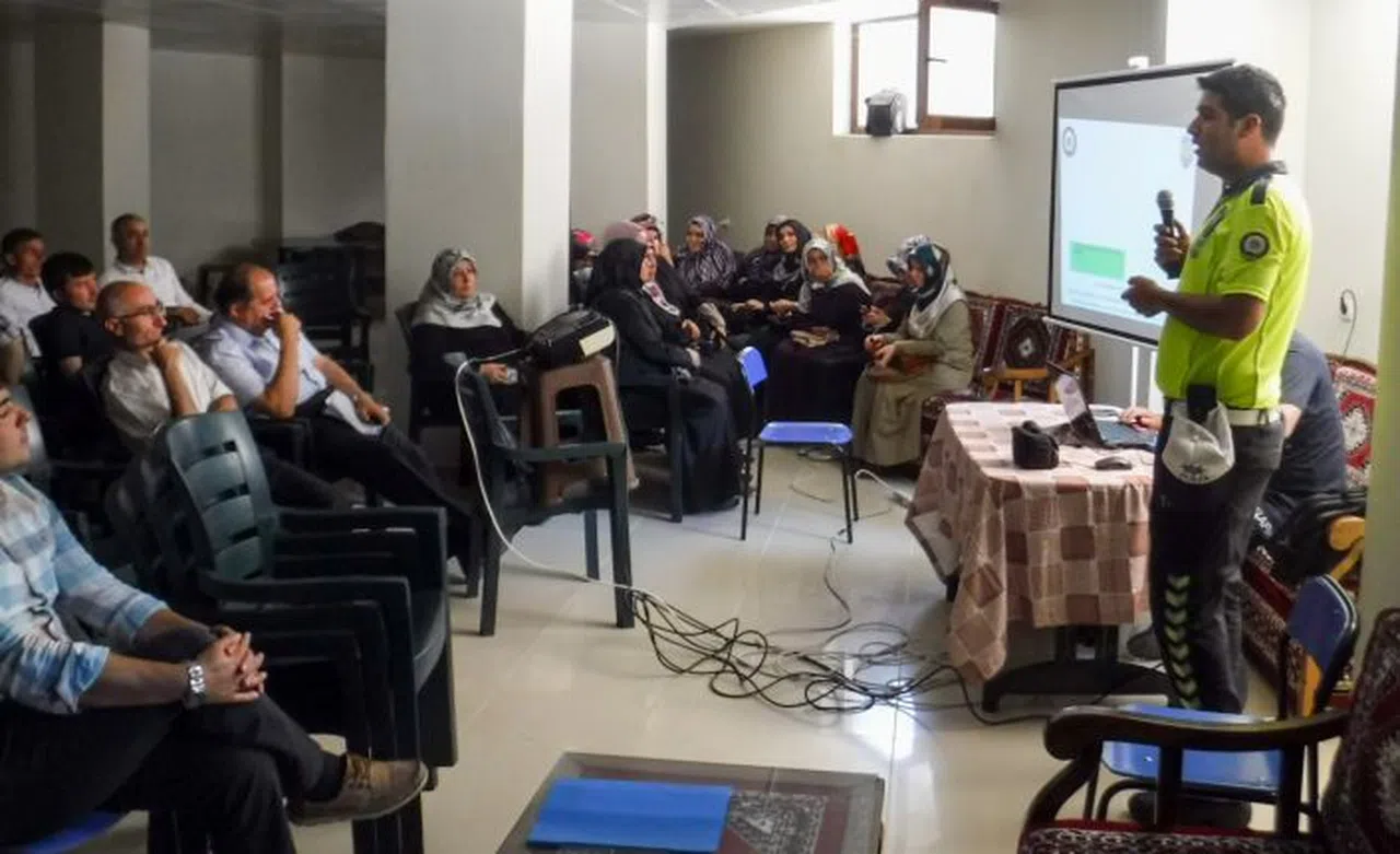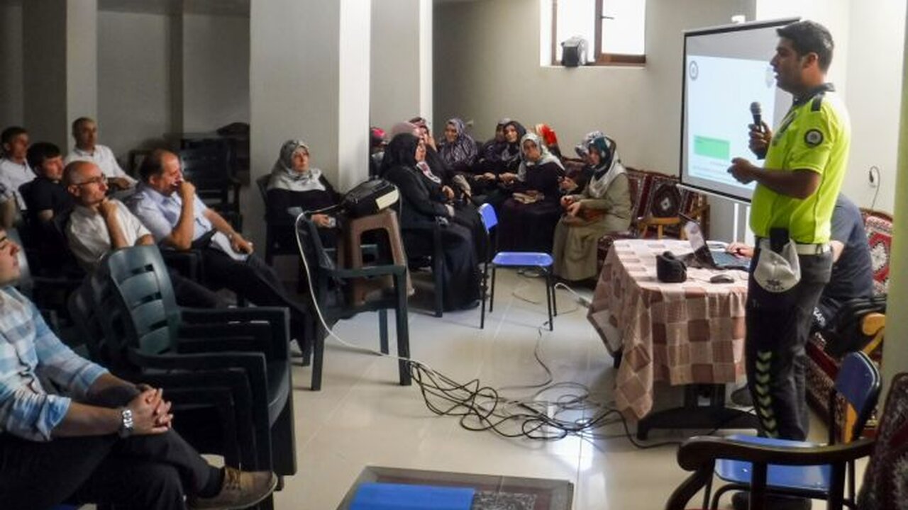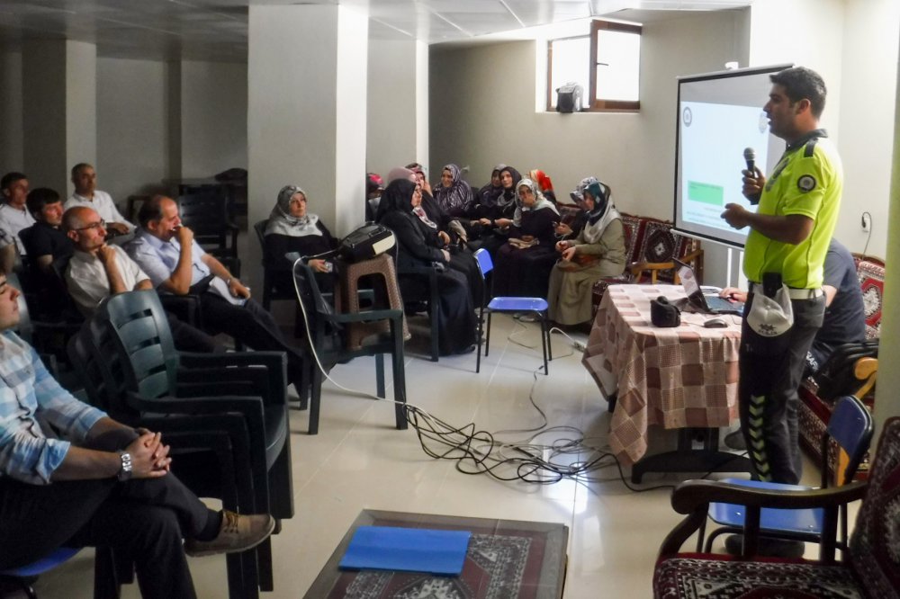 Trafik kazalarında yaşanan ölümleri en az seviyeye indirmek için Valilik oluru ile hayata geçirilen ‘Emniyet Kemeri ile Hayata Bağlanın’ ve ‘Öncelik Hayatın Öncelik Yayanın’ projeleri kapsamında ilde görev yapan Gençlik ve Spor İl Müdürlüğü ve Müftülük görevlilerinden oluşan toplam 75 personele Trafik Tescil ve Denetleme Şube Müdürlüğü’nde görevli Komiser Yardımcısı Tacettin Eyi tarafından anlatılarak ve projenin başarıya ulaşması için destek istendi.