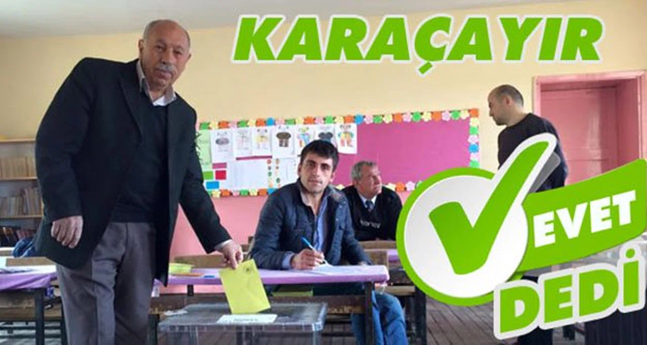 Karaçayır Köyü’nde yapılan halkoylamasında, 164 seçmen oy kullanmak için sandığa giderken, yapılan sayım sonucunda 111 seçmenin ‘Evet’, 53 seçmenin de ‘Hayır’ oyu kullandığı ortaya çıktı.