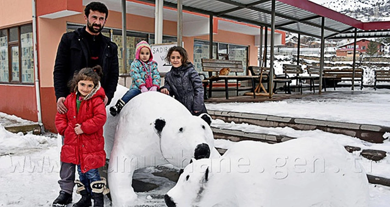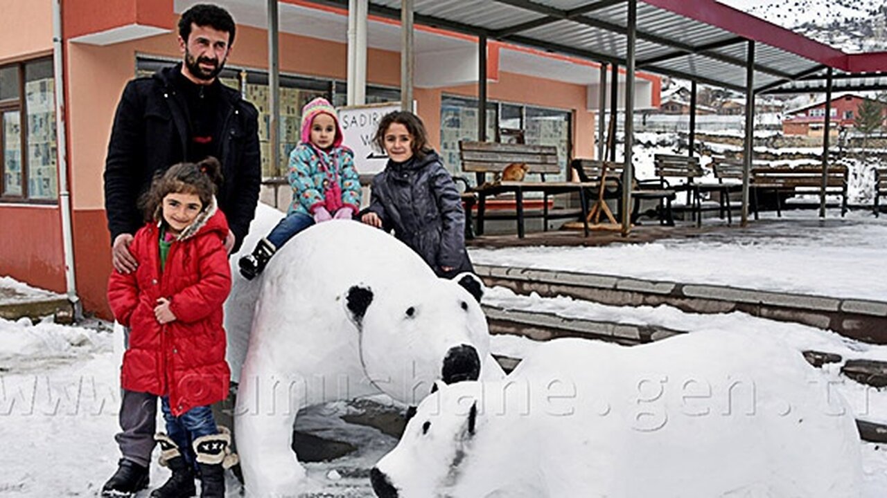 Kızları ile çalışmasını tamamlayarak kardan kutup ayısına son şeklini veren Oral’a yardımcı olan yeğeni 4 yaşındaki Zeynep Oral ise sempatik tavırlarıyla mikrofona kutup ayılarının nerede yaşadığını söylemesi renkli görüntülere sahne oldu.