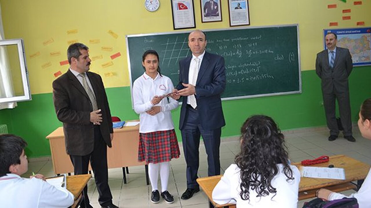 Kaya’ya ödülü sınıfında kendisini ziyaret eden İl Milli Eğitim Müdürü Muhammet Şahinkaya tarafından verildi.