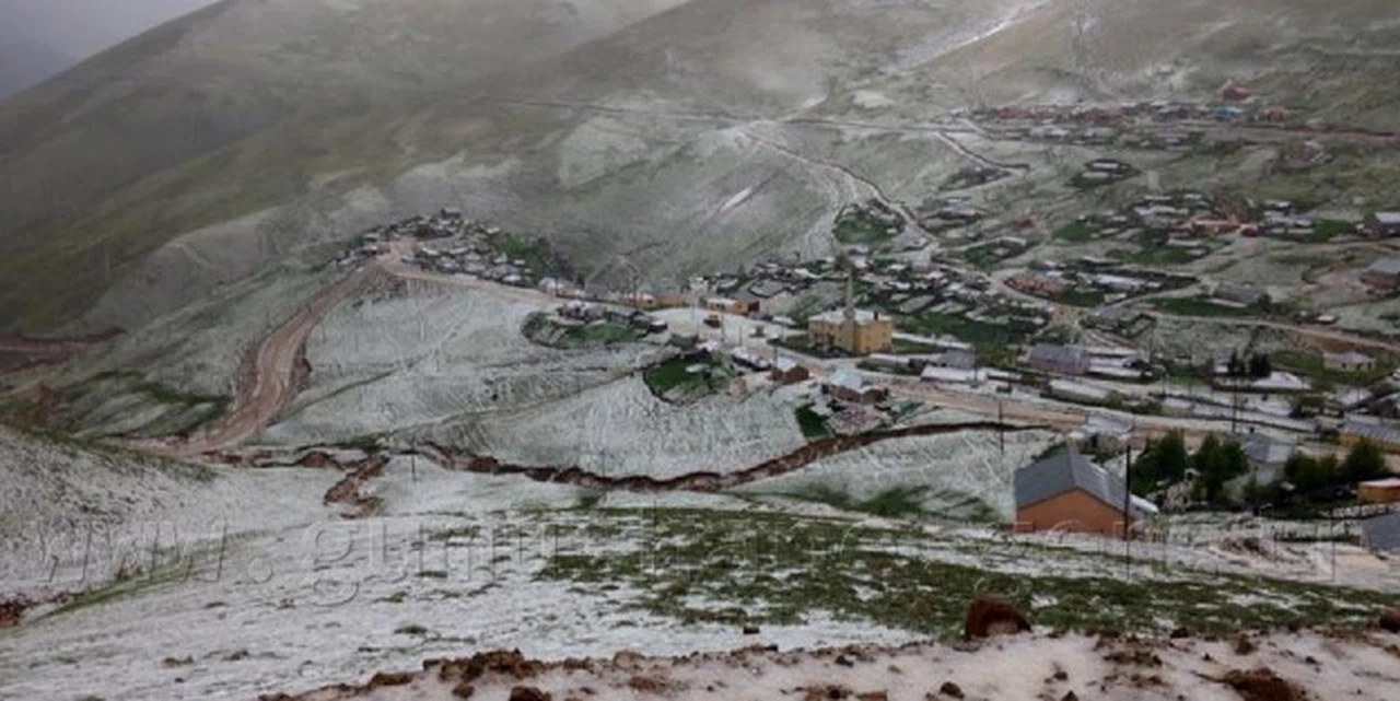 Gümüşhane’nin Kürtün ilçesi sınırlarında yer alan 2 bin 300 metre rakımlı Kazıkbeli Yaylasında dolu yağışı bölgeyi beyaza bürüdü.