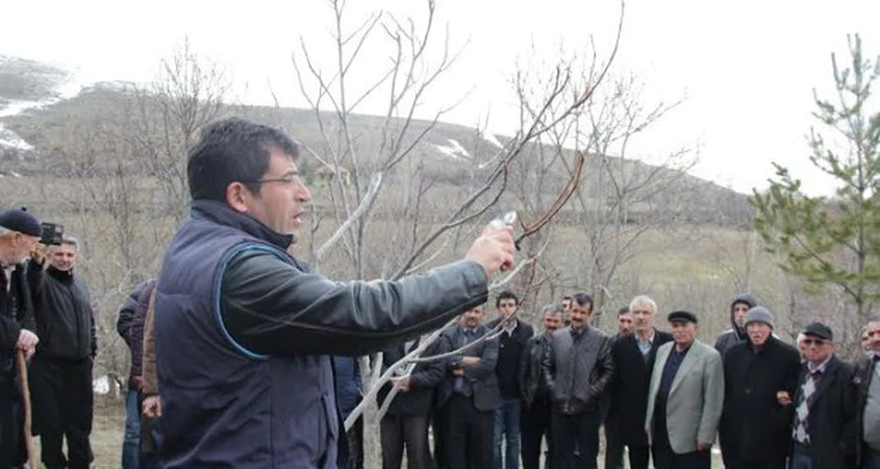 Bir saat süren teorik eğitimin ardından saha uygulaması için Aşut köyünde bulunan örnek bahçeye gidildi. Prof. Dr. Yaşar Akça, bizzat budama işlemini gerçekleştirerek üreticilere tavsiyelerde bulundu.