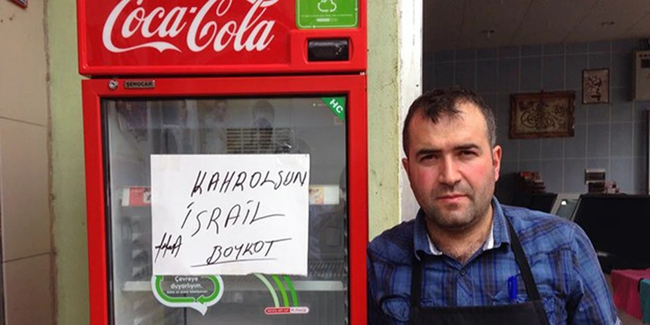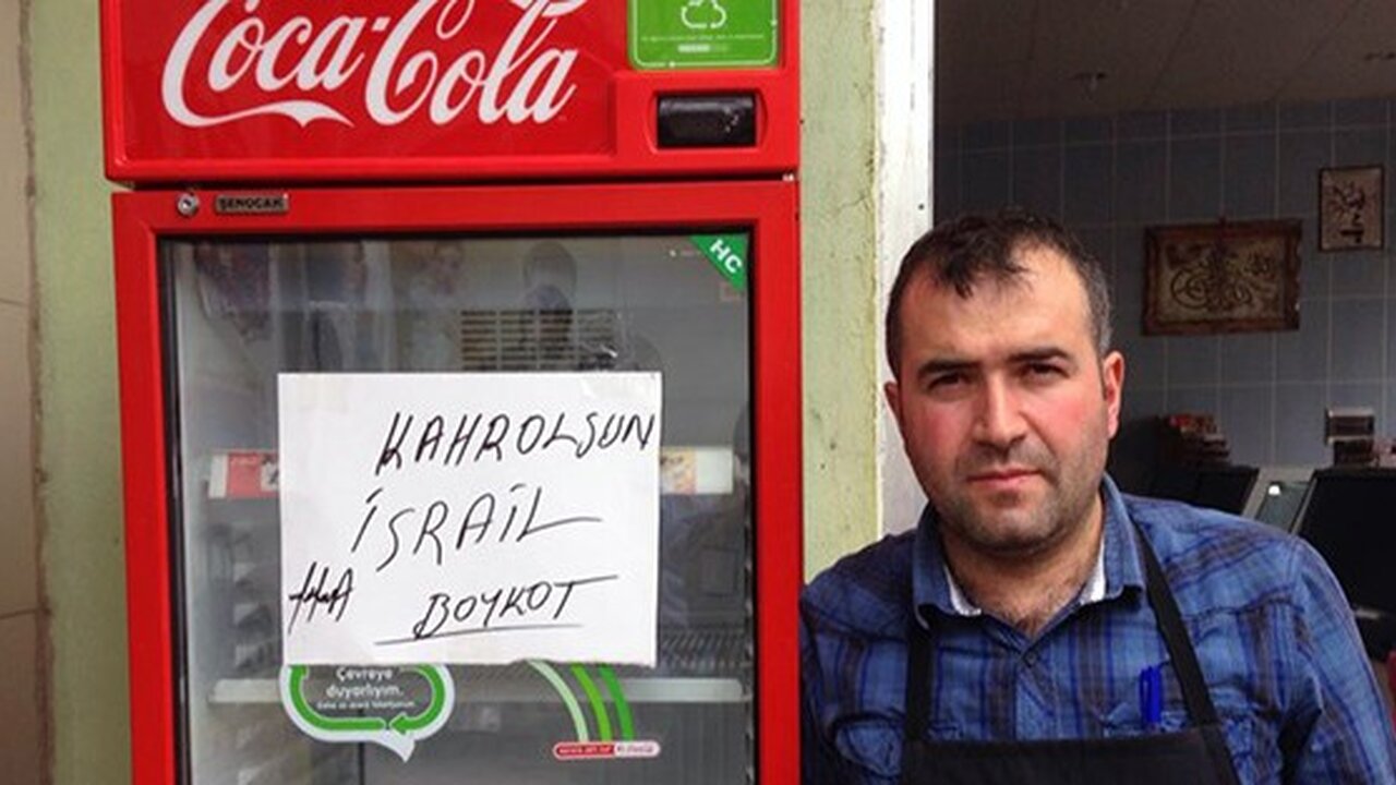 Gümüşhane’nin Kelkit ilçesinde bir esnaf İsrail’in Gazze’de ki saldırılarına tepki için kola satışını durdurdu.
