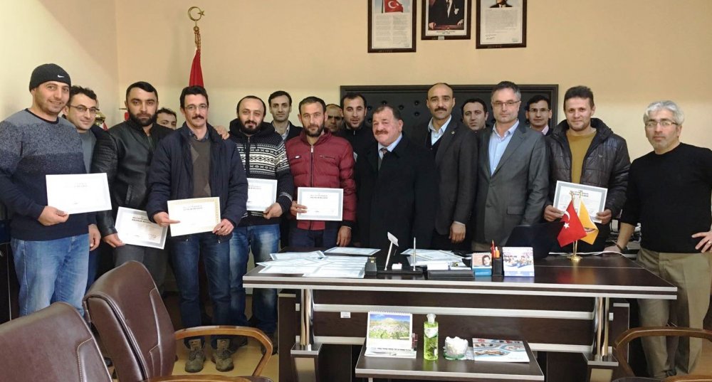 Belge almaya hak kazanan sanatkârlarımızın belgeleri Okul Müdürü Yılmaz Çakıcı, Kelkit Esnaf ve Sanatkârlar Odası Başkanı İbrahim Bingöl, Kelkit Esnaf ve Sanatkârlar Odası Genel Sekreteri Rahmi Uçar, Müdür Başyardımcısı Ahmet Nas ve Mesleki Eğitimden Sorumlu Müdür Yardımcısı Önder Özmen tarafından takdim edildi.