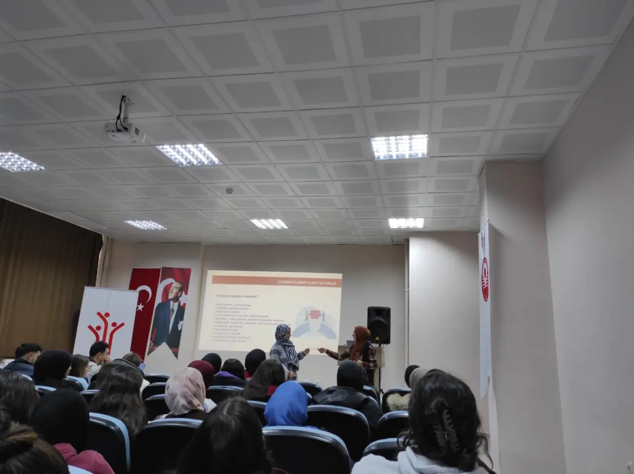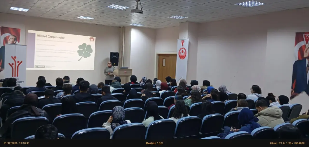 Eğitim maratonunun ilk oturumunda Psikolog Kübra Doğan, Aile Eğitim Programı çerçevesinde kürsüye çıktı. "Evlilik Çatışmasına Sebep Olan Faktörler ve Çözümleri" başlıklı sunumuyla öğrencilere seslenen Doğan, evlilik kurumunun sağlam temellere oturması için gereken psikolojik altyapıyı anlattı. Özellikle çiftler arasındaki beklenti uyumsuzlukları ve stres faktörlerinin ilişkiyi nasıl yıprattığına dikkat çeken Doğan, kriz anlarında "etkili iletişim" tekniklerinin hayati önem taşıdığını vurguladı. Psikolog Doğan, gençlere hitaben yaptığı konuşmada, sorun çözme becerilerinin geliştirilmesinin sadece evlilikte değil, tüm sosyal yaşamda başarıyı getireceğini ifade etti.