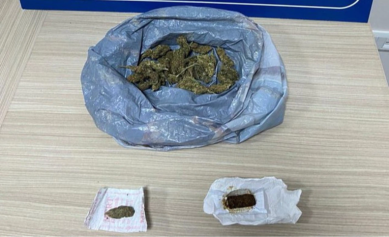 Ekipleri şahsın üst ve araç aramasında beyaz peçete kâğıdına sarılı daralı ağırlığı 1,94 gram bonzai, market fişine sarılı daralı ağırlığı 1,18 gram ve poşete sarılı ağırlığı 61 gram olmak üzere toplam 64,12 gram esrar maddesi ele geçirdi.