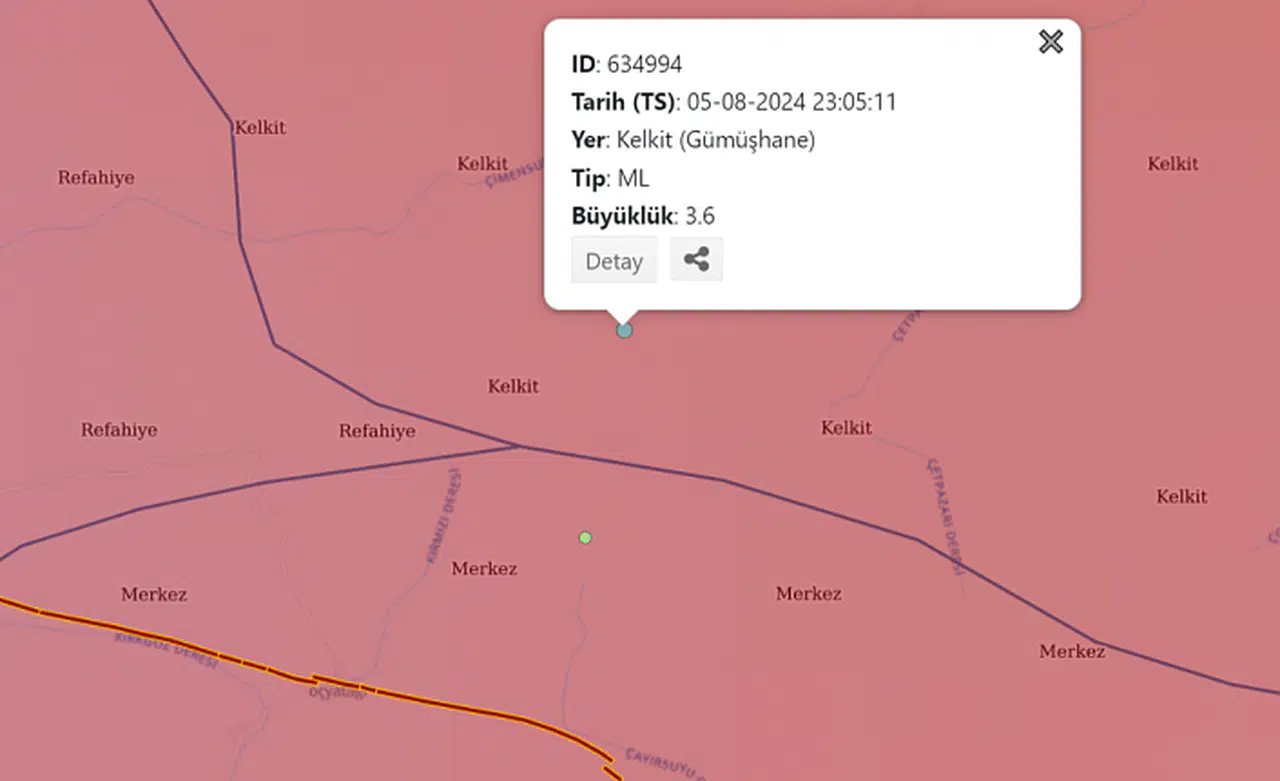 Temmuz ayı başından bugüne kadar irili ufaklı 6 deprem kaydının bulunduğu Gümüşhane’nin Kelkit ilçesi bu akşam 23.05’te bir kez daha sallandı.