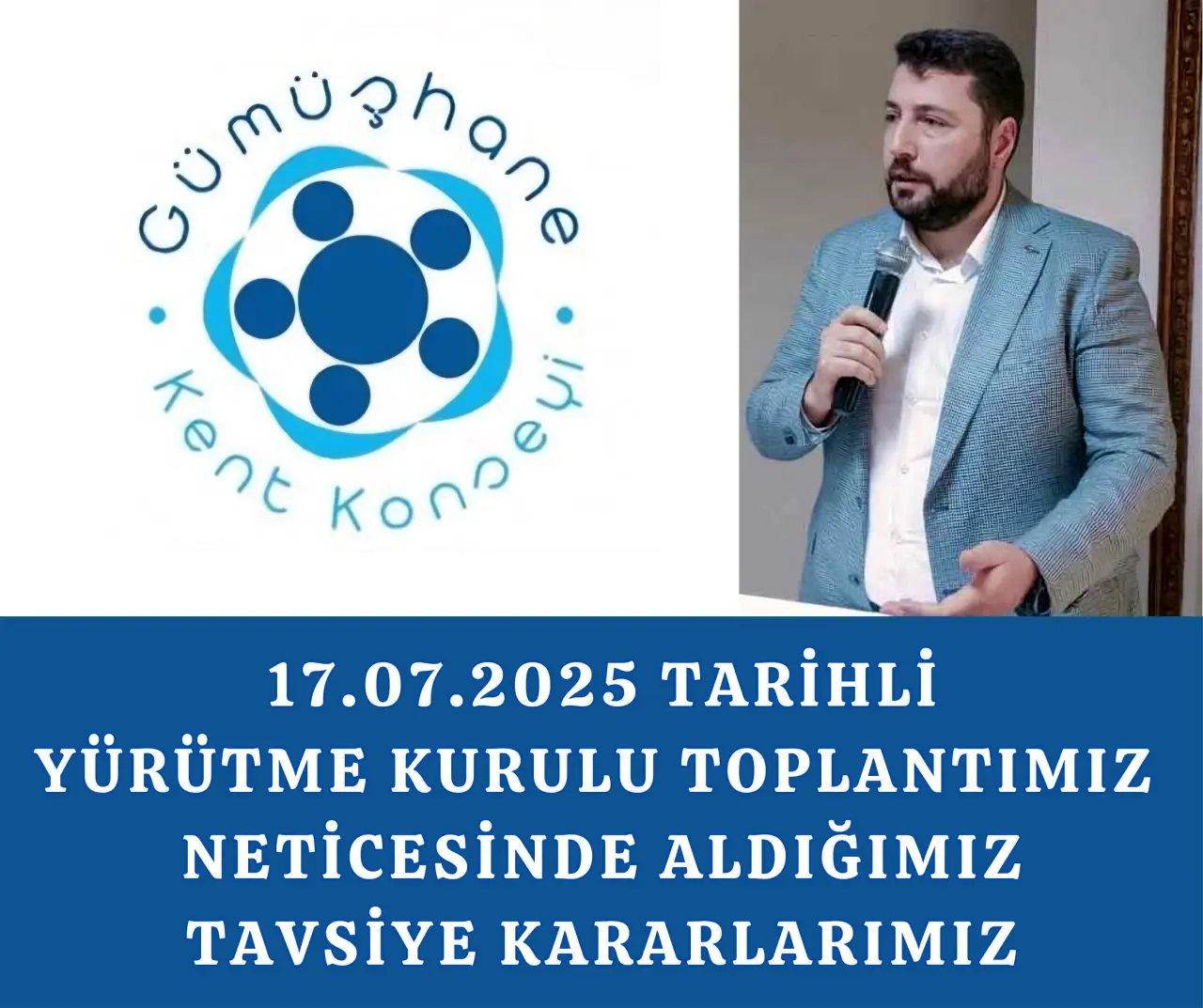 Kent Konseyi Başkanı Rüstem Demirağ, alınan kararları açıklayarak tabela eksikliğine değindi. Demirağ, “Kentin en önemli turizm hattı olan ve Karaca Mağarası, Cehennem Vadisi Kanyonu, İmera Manastırı, Krom Antik Kenti, Taşköprü Yaylası, Camiboğazı Yaylası, Santa Harabeleri gibi önemli destinasyonlara erişimin olduğu Krom Vadisinin Trabzon-Gümüşhane yönündeki kavşağında ve yine kentimizin en önemli turizm alanları olan Süleymaniye Antik Kenti ile İkizevler Kent Müzesinin yol ayrımlarında tespit ettiğimiz yönlendirme tabelası eksikliğinin turistik alanları ifade eden kahverengi zeminli tabelalar ile giderilmesi konusunda Karayolları 101. Şube Şefliğine tavsiye karar gönderilmesine oy birliği ile karar verilmiştir” dedi.