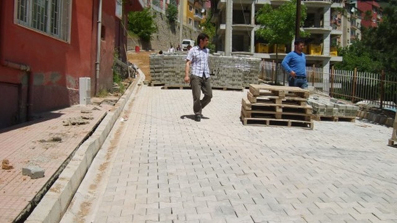 Gümüşhane Belediyesi Fen İşleri Müdürlüğü tarafından Hasanbey Mahallesi Kıbrıs Çarşısı Topal Yolu başlangıcında başlatılan parke çalışması devam ediyor.