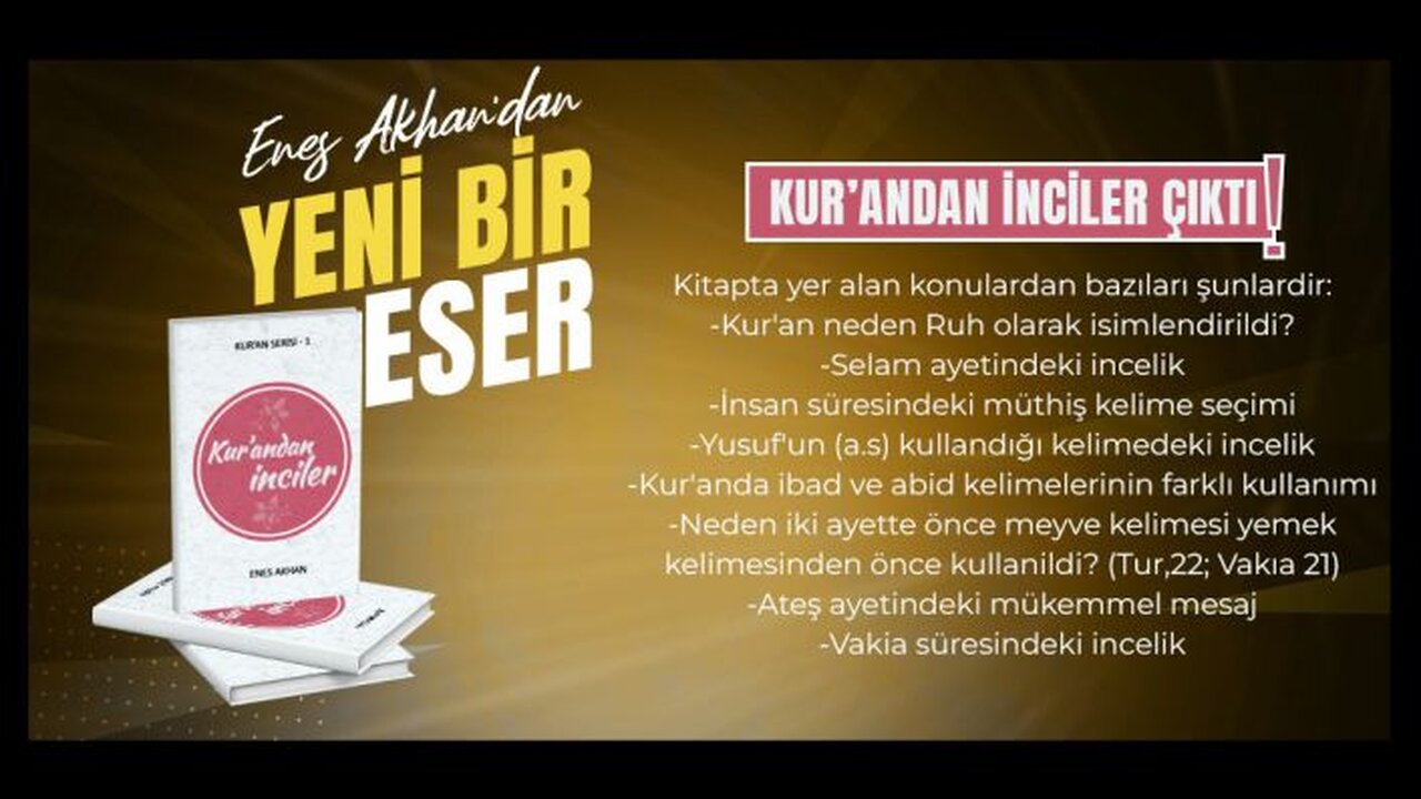 Kur’an’ın her bir kelimesinin bir inci tanesi gibi dizildiğini gösteren örneklerle dolu bir kitap ortaya çıktığını ifade eden Akhan, “Kitapla amaçladığım şey, insanların Kur’an’a dair meraklarını ve ilgilerini arttırmaktır. Aslında her bir kelimesi inci tanesi gibi dizilmiş bir kitaba muhatabız. Yüce Allah’ın kelamı, mesajı bizler için çok değerli olmalı. Kitabı okuyanlarda eminim Kur’an’a dair daha çok ilgi, alaka oluşacak ve okurlarımız Kur’an’a dair daha çok bilgiler elde etmek, daha çok öğrenmek ve öğretmek isteyeceklerdir. Kitabı okuyacak olan hemşehrilerime şimdiden iyi okumalar dilerim. Eminim, kitabımızı okudukça şaşıracakları bir sürü bilgi görecekler, müşahede edeceklerdir” dedi.