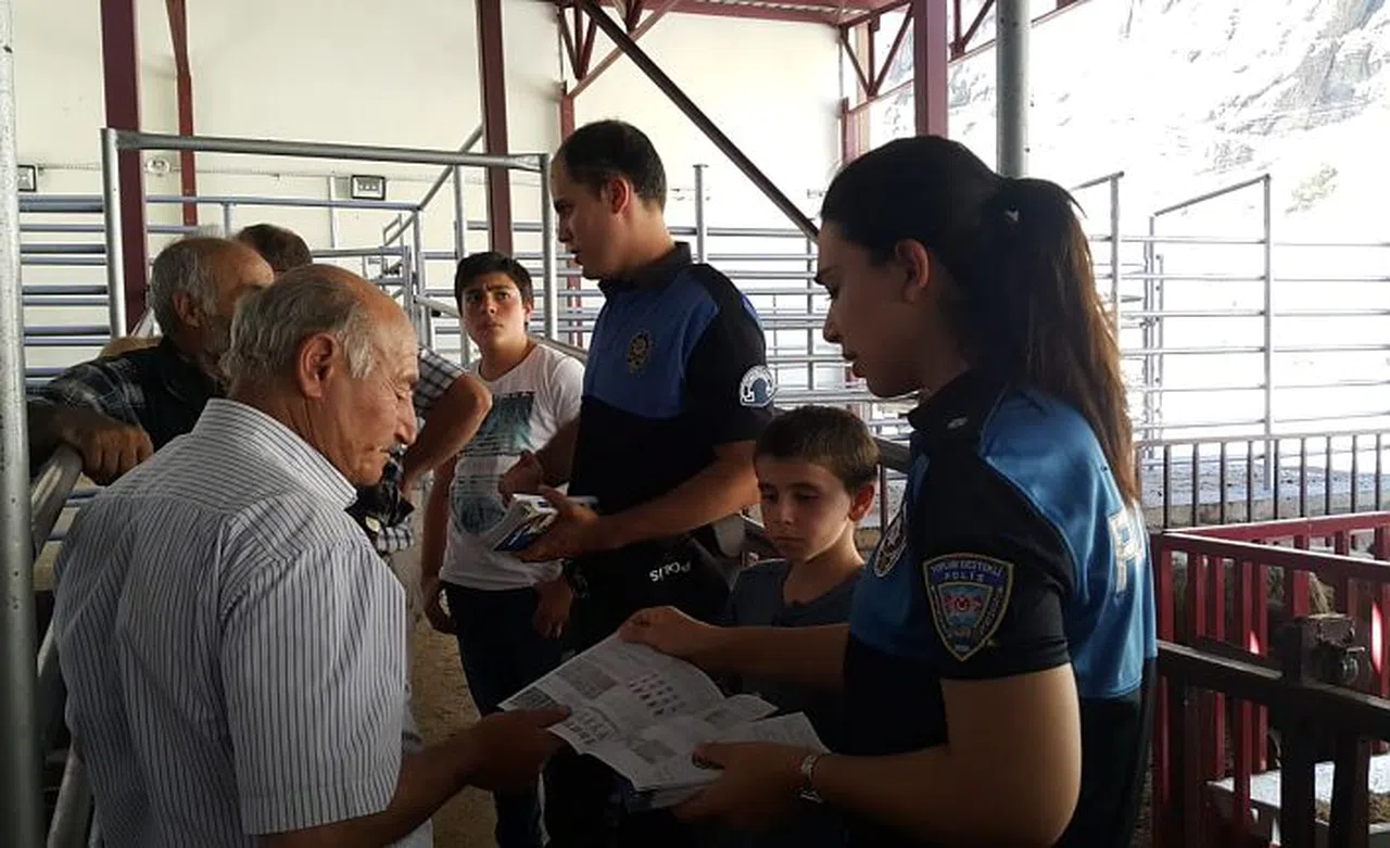 Gümüşhane İl Emniyet Müdürlüğü, Toplum Destekli Polislik (TDP) Şube Müdürlüğü görevlileri tarafından Kurban Bayramı öncesinde vatandaşlara broşür dağıtarak hırsızlık ve dolandırıcılık konularında uyarılarda bulunuldu.