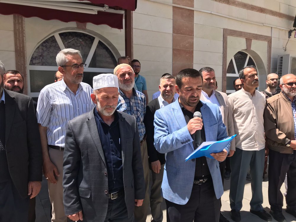 Kemaliye Camii avlusunda darp edilen din görevlisi Mehmet Ali Uzun’un da katıldığı açıklamada Mil Diyanet-Sen Gümüşhane İl Başkanı Fatih Ağaç, din görevlilerine yönelik bu tür saldırıların asla kabul edilemez olduğunu söyledi.