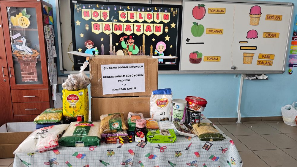 Okulda öğrencilere yardımlaşma, dayanışma ve paylaşma gibi değerlerin kazandırılması için hazırlanan “Değerlerimle Büyüyorum” projesi kapsamında sınıflarda Ramazan ayında ihtiyaç sahipliği ailelere verilmek üzere Ramazan kolisi hazırlama çalışması yapıldı.