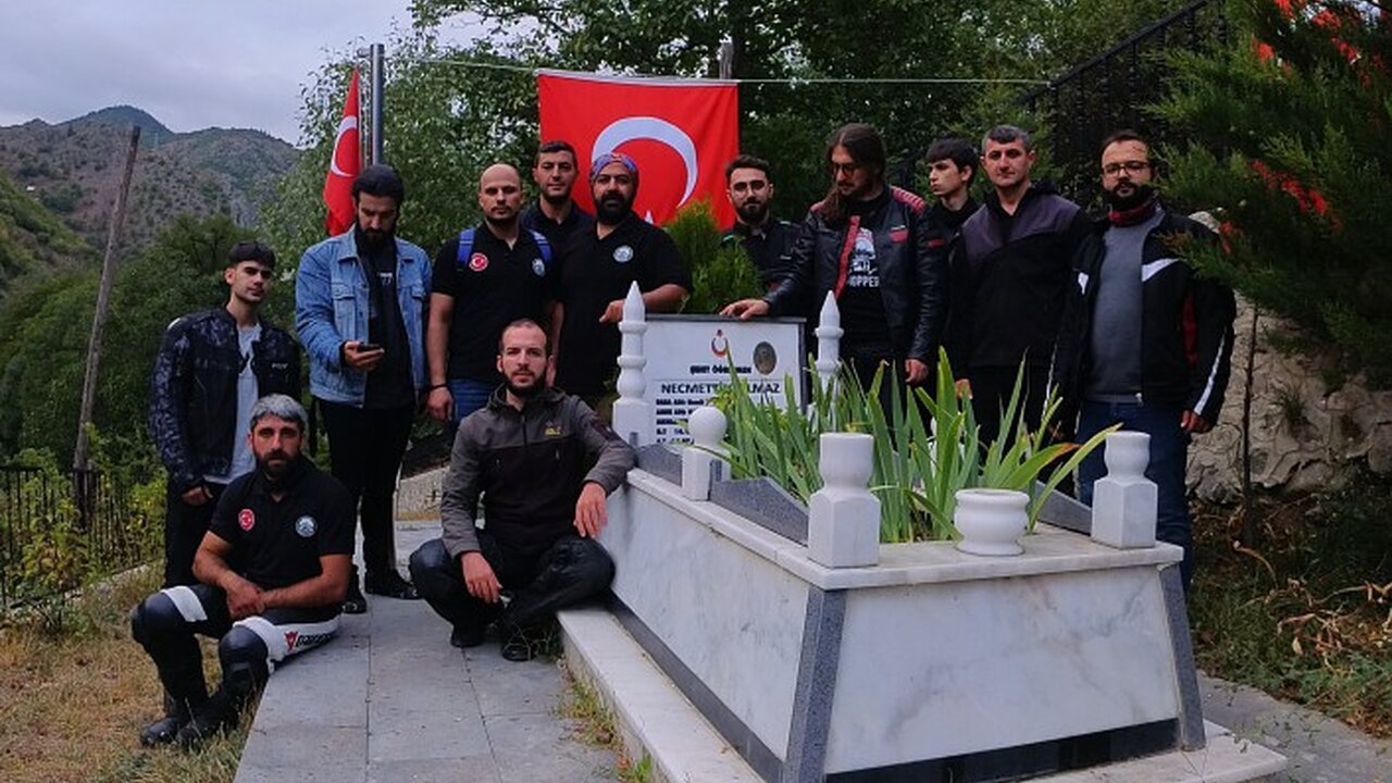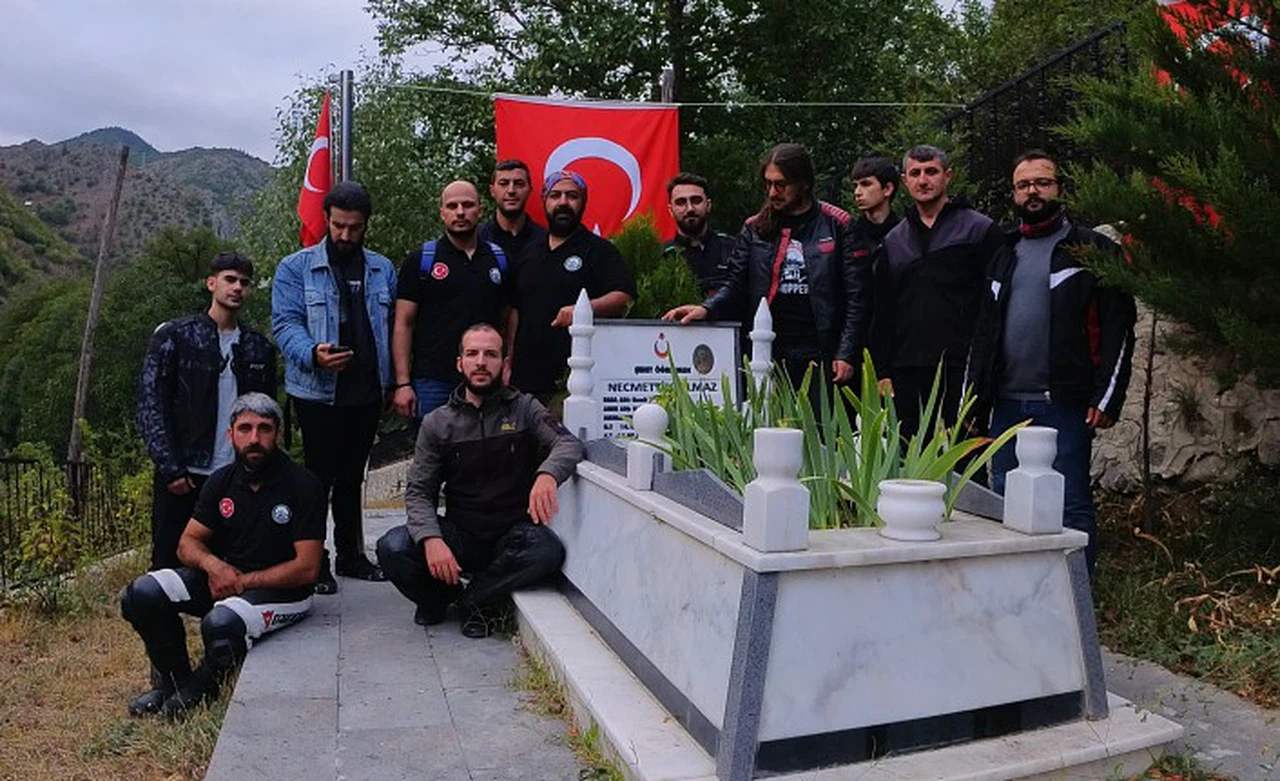 Gümüşhane'nin Torul ilçesine bağlı Demirkapı köyünde bulunan kabri başında düzenlenen programda motor tutkunları 23 yaşında şehit edilen sınıf öğretmeni Necmettin Yılmaz ve tüm şehitler için dua etti.