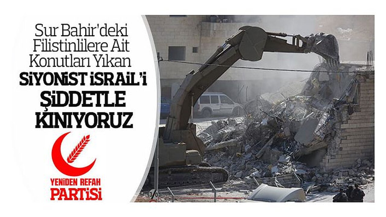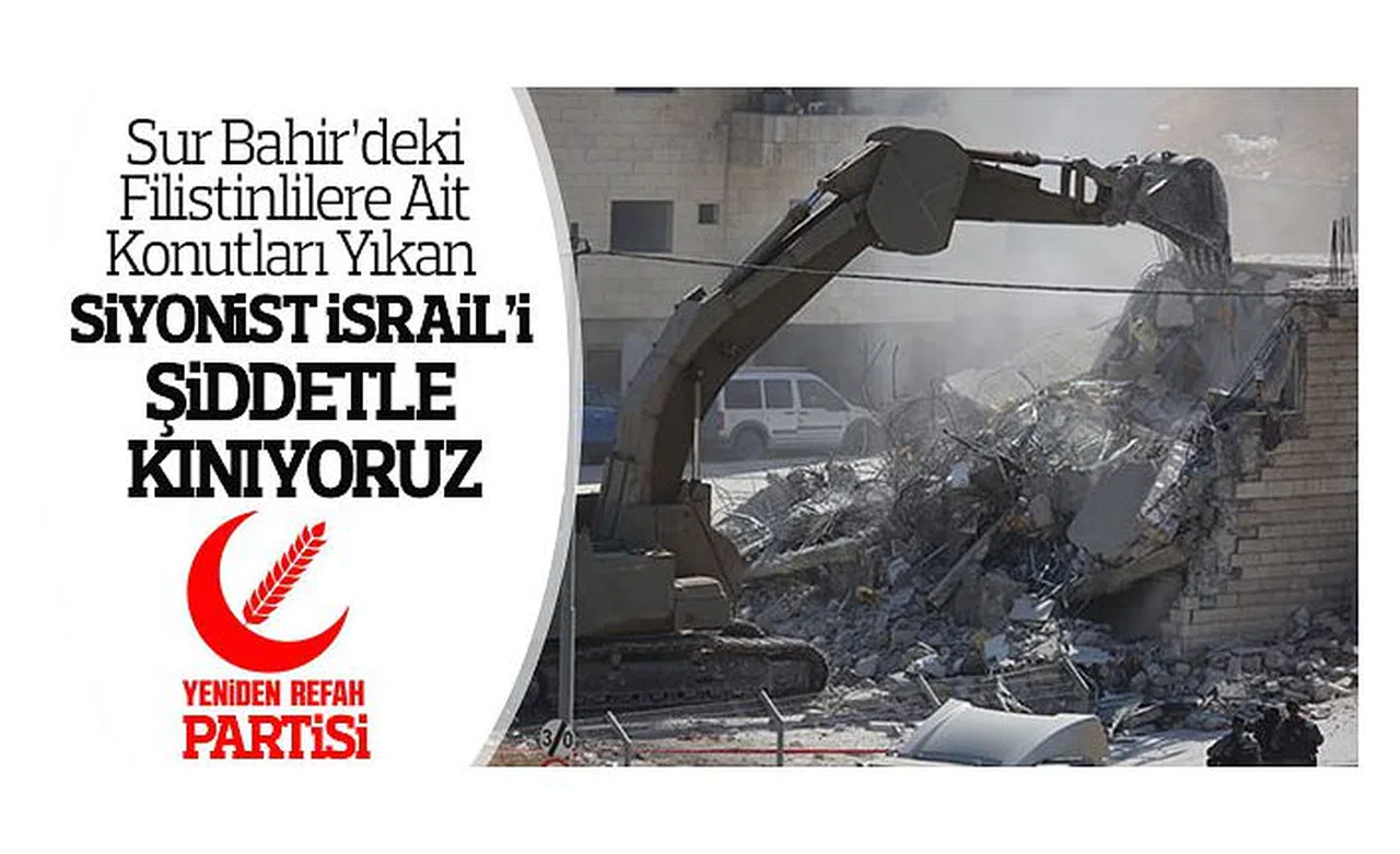 Yeniden Refah Partisi Gümüşhane İl Başkanı Ziya Nas, terör devleti İsrail’in Filistin'in egemenliğindeki Sur Bahir’deki Filistinlilere ait konutları hukuksuz şekilde yıkmasını şiddetle kınadıklarını söyledi.