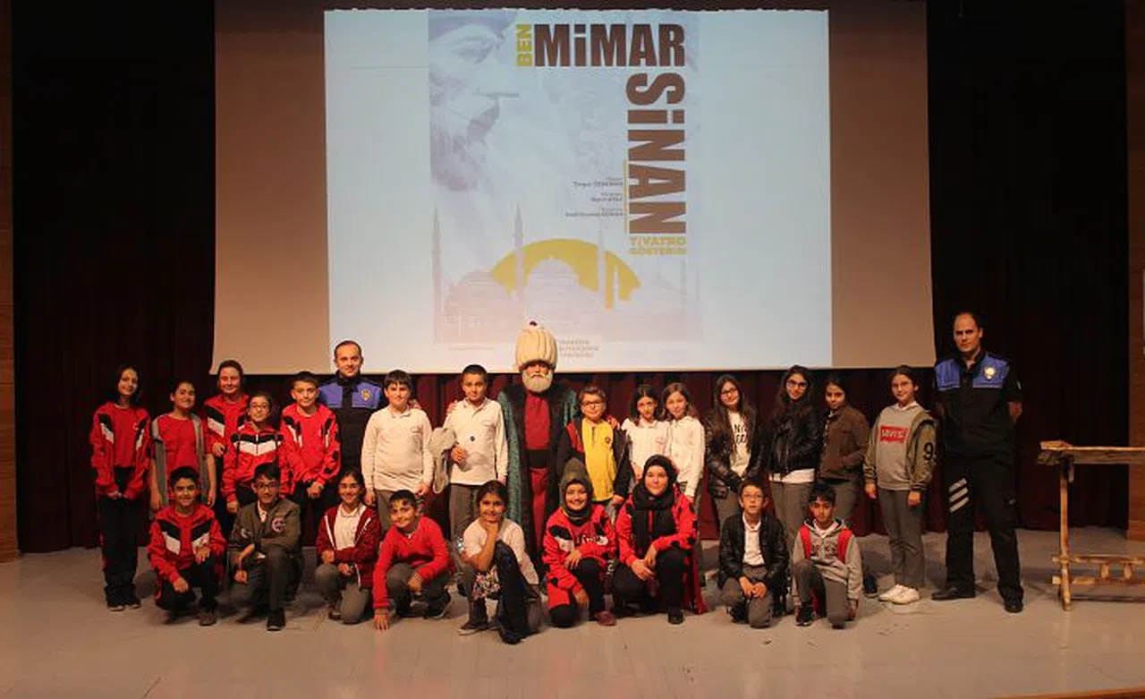 Proje kapsamında Trabzon Büyükşehir Belediyesi Tiyatrosu tarafından “Mimar Sinan” adlı oyunu Gümüşhane Kültür Merkezinde sahnelendi.