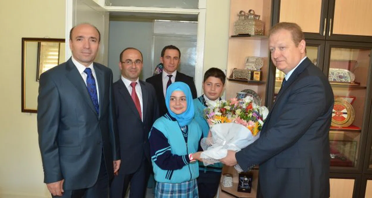 Gümüşhane İmam Hatip Ortaokulu öğrencileri 15-19 Eylül tarihleri arasında kutlanacak olan İlköğretim Haftası nedeniyle Vali Yücel Yavuz’u makamında ziyaret etti.