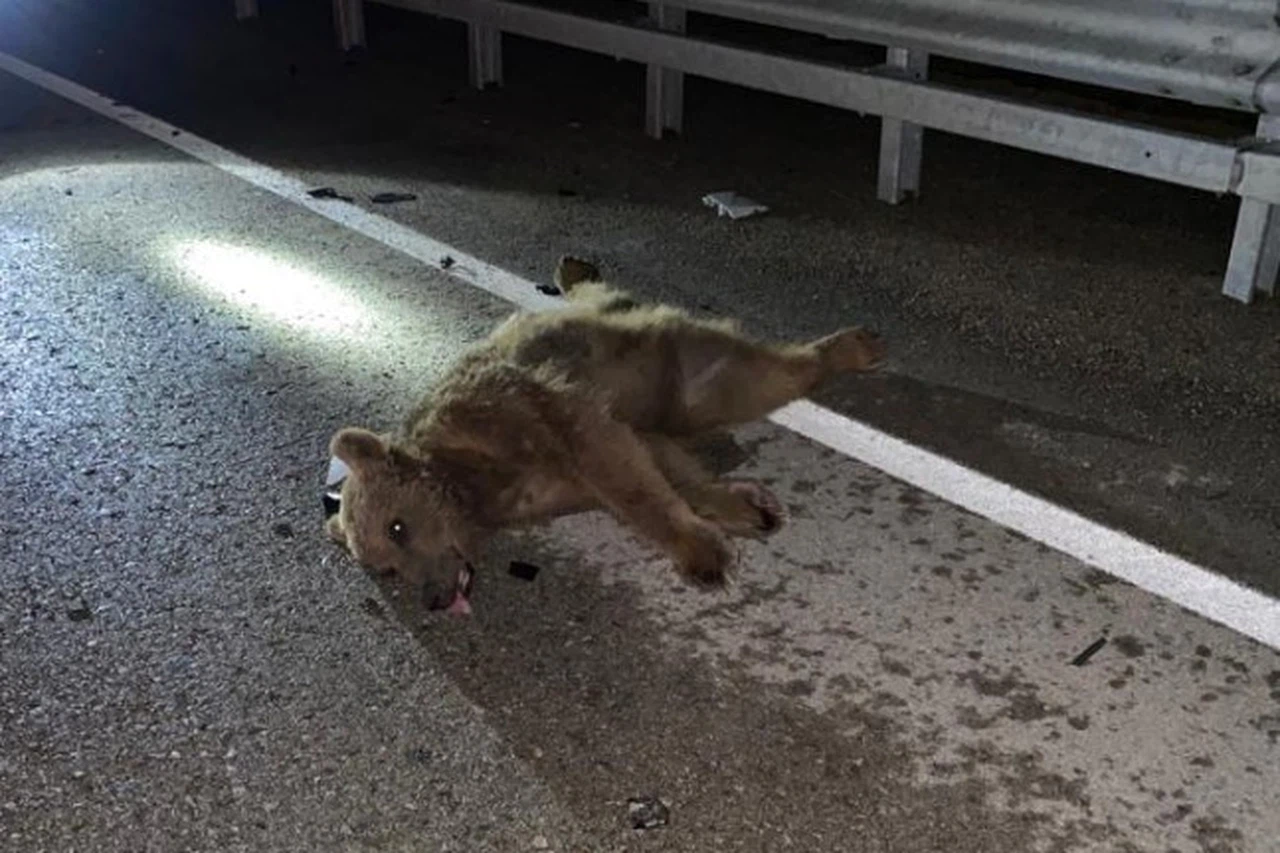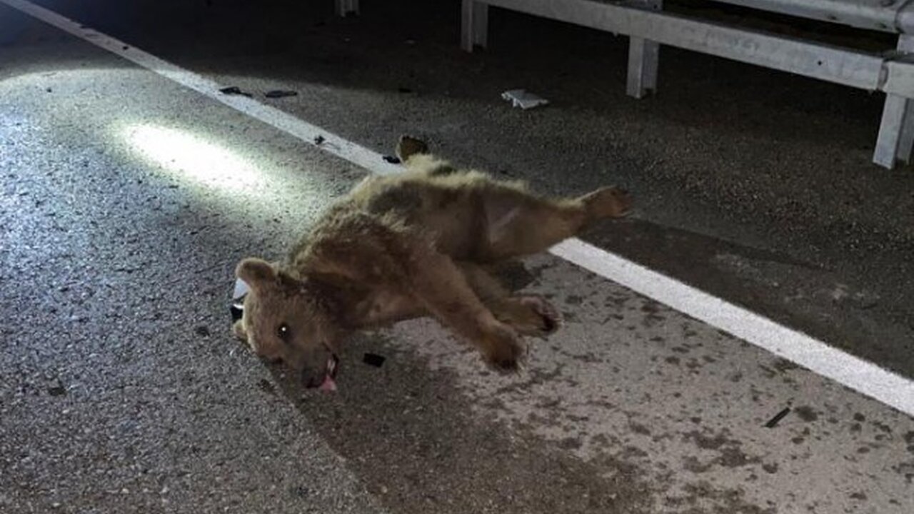 Yağış nedeniyle kayganlaşan yolda çarpmanın etkisiyle yoldan çıkan otomobilin sürücüsü O.K. yara almadan kurtulurken çarptığı ayı ise telef oldu.