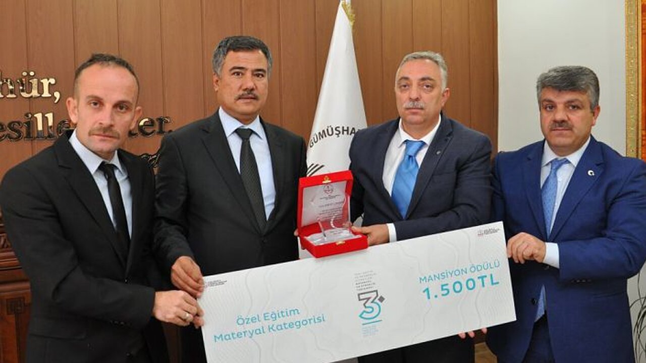 "Fikirler yarışsın engeller aşılsın" sloganıyla düzenlenen yarışmada 2 bin 200 başvuru yapıldı, bin 416 eser katıldı, 26 eserin ödüle layık görüldüğü yarışmada Gümüşhane Özel Eğitim Uygulama okulu mansiyon ödülü kazandı.