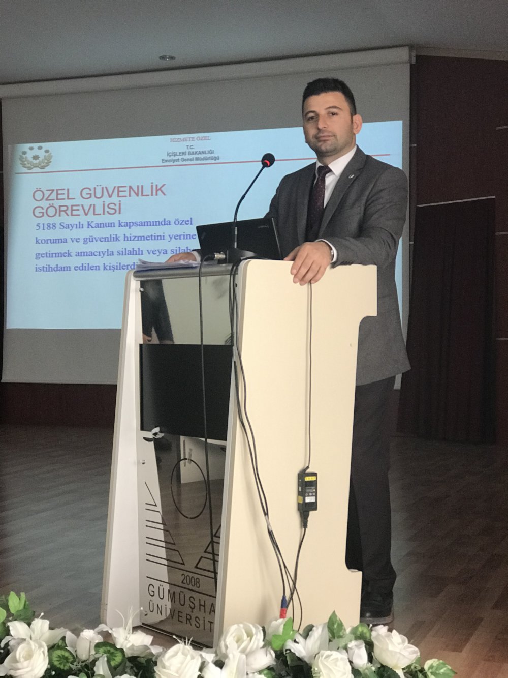 Gümüşhane Üniversitesi Sosyal Bilimler Meslek Yüksek Okulu Çok Amaçlı Salonunda 14-17 Kasım tarihleri arasında düzenlenen eğitim programında üniversite kampüsü ve kampüs dışında bulunan ek binalarında, öğrenci yurtlarında, öğrencilerin yoğunlukla bulunduğu açık ve kapalı alanlarda karşıt görüşlü öğrenci grupları arasında çıkabilecek olaylarında öğrenci ile ilk teması kuracak olan özel güvenlik görevlilerine daha dikkatli ve duyarlı olmaları istendi.